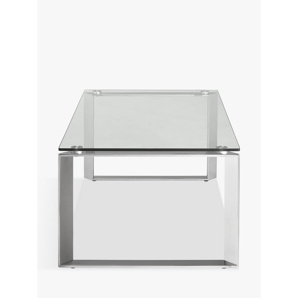 Ideal for creating a sense of light and space in the centre of your living room, this coffee table has a sleek and modern design. Easy to assemble, the high-quality, thick tempered glass surface top can be wiped clean, and it's well-supported by sturdy square steel legs. For added convenience, the open space beneath the table can accommodate the Tropez nest of tables, so you have the opportunity to maximise your surface space options. Want to see it first? You may want to see and get a feel for the furniture in one of our shops before ordering. We'll be able to tell you where the range you'd like to view is on display.