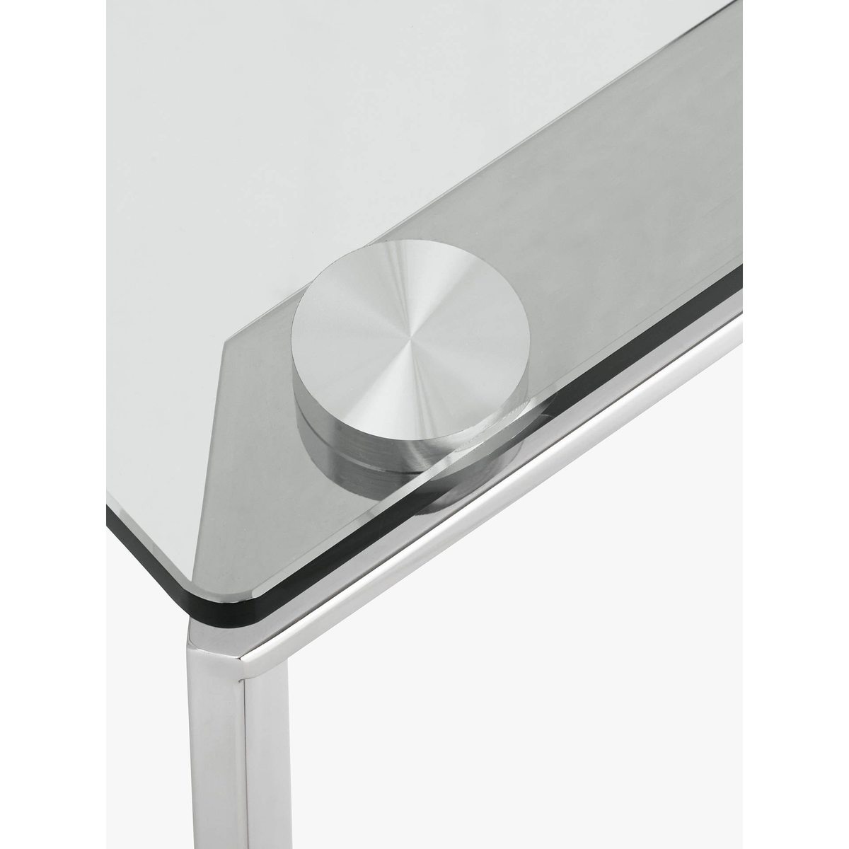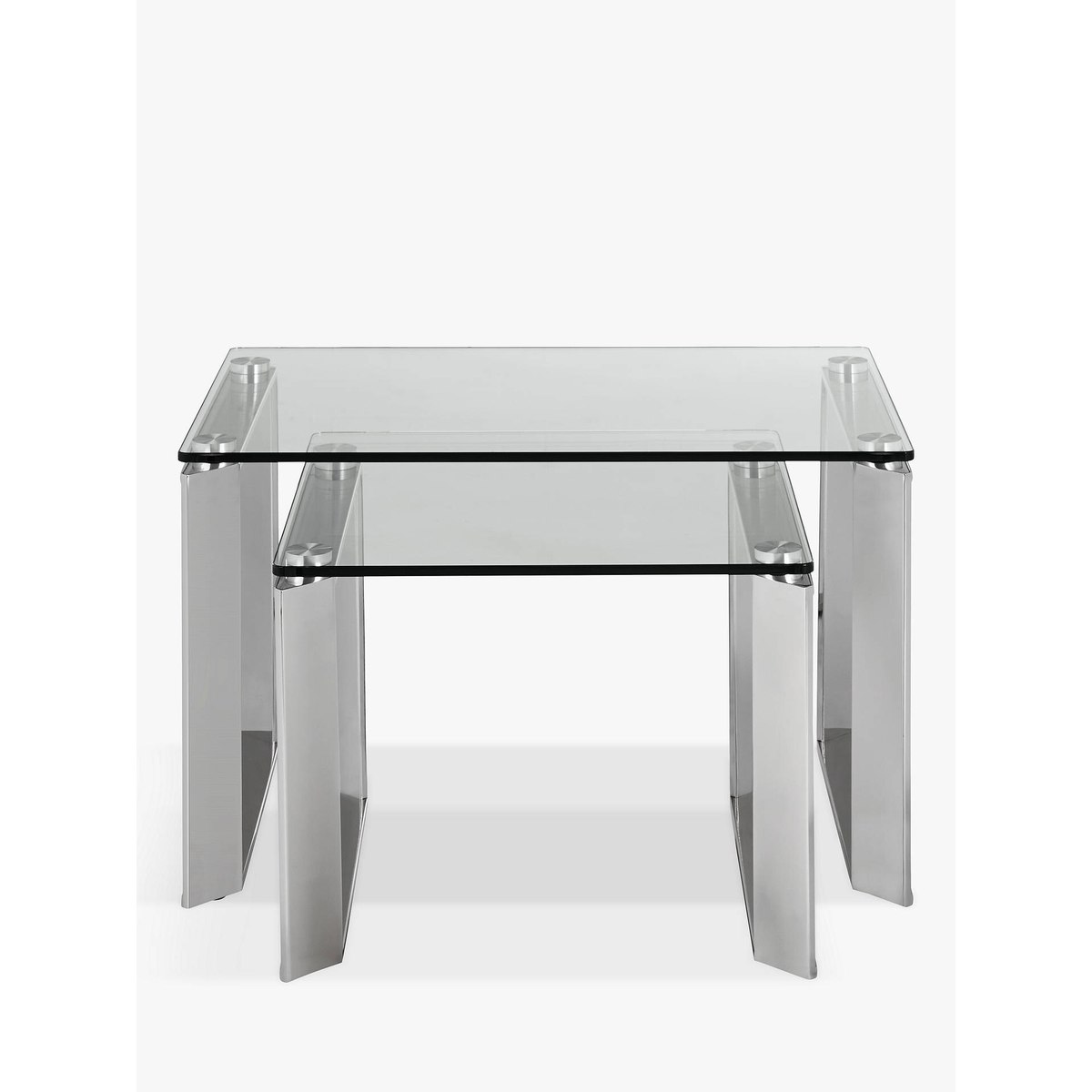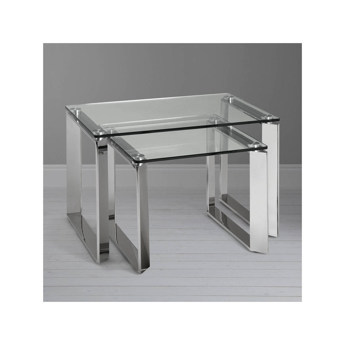Instantly creating a sense of light and space, our Tropez range is made from 10mm tempered glass and sleek, 201 grade polished stainless steel for a modern aesthetic which reflects light to stunning effect. The Tropez nest is the perfect solution for smaller rooms, simply pull out the second table from beneath to instantly create additional surface space. Its stylish square legs and seamless glass top lend interiors a clean look as the table slots effortlessly into your existing decor. Please note: not all our ranges are on display in our shops.