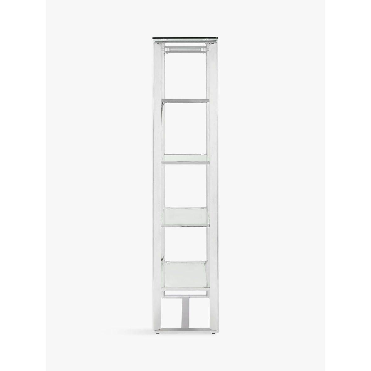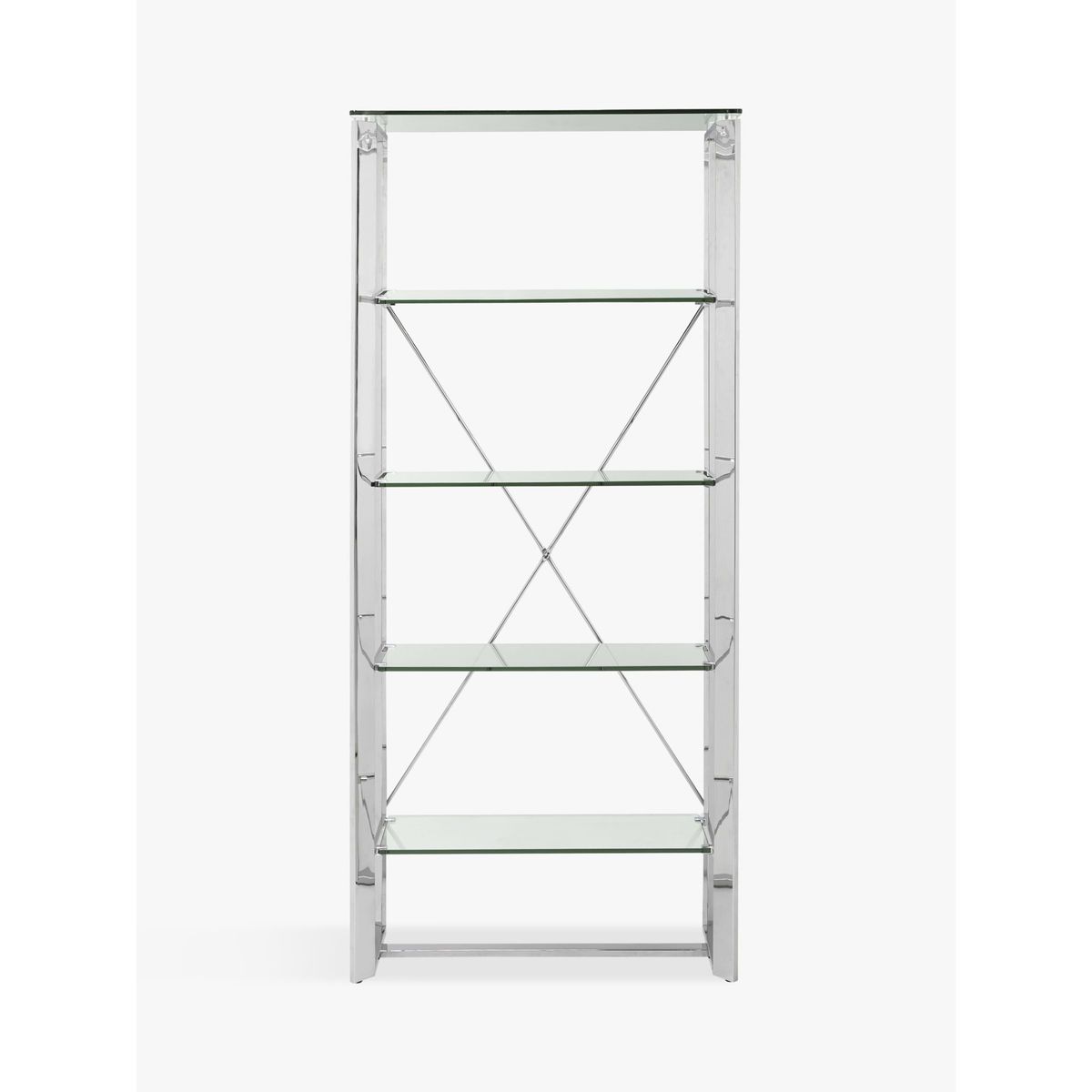 Providing ample storage space in your living room, this sturdy shelving unit has a modern and clean-lined design. Easy to assemble, the high-quality, thick tempered glass shelves are well-supported by robust steel legs. The glass creates an illusion of extra light and space and it needs a simple wipe-clean to keep it looking its best.