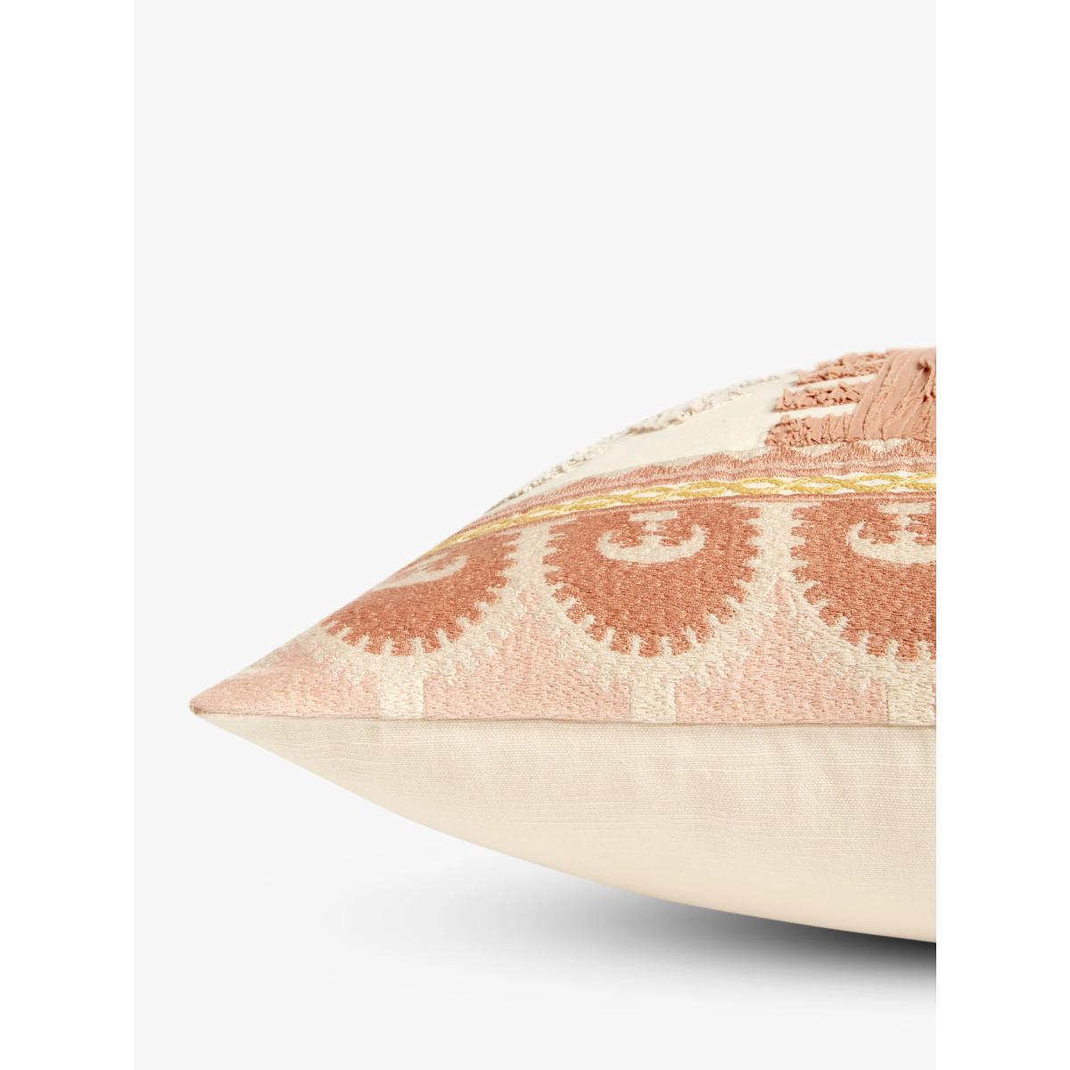 I love the John Lewis & Partners Tufted Kelim Cushion for its detailed, ethnic-inspired pattern and versatile colour palette. Its graphite tone makes it a great choice for adding depth to neutral sofas or beds, while the interesting textured design lends a subtle layer of visual interest. It's perfect for complementing both contemporary and bohemian interiors, especially when paired with natural fibres, layered textiles, or metallic accents. For styling tips, consider mixing it with other cushions in earthy tones or soft textiles to create a relaxed, curated look. Its durable woven construction also makes it a practical choice for everyday use in living rooms or as a statement piece on beds.