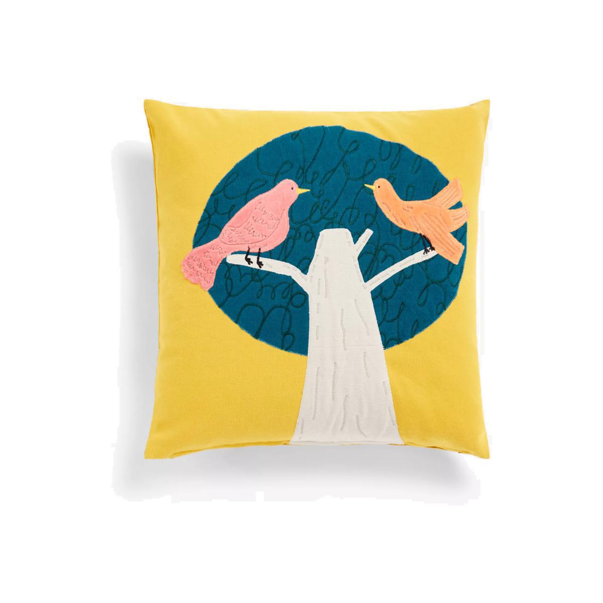 This cushion is a great way to add a cheerful pop of colour and a touch of playful charm to any space. I love it for bringing warmth and personality, especially in neutral or understated interiors. It works brilliantly on a sofa or armchair, creating an inviting focal point, and pairs well with other textiles in soft, muted tones or complementary colours for a cohesive look. For practical styling, consider layering it with textured throws or contrasting cushions to give your sofa a curated, lived-in feel. Its vibrant mustard hue and whimsical birds also make it ideal for children's rooms or brightening up a cosy reading nook.