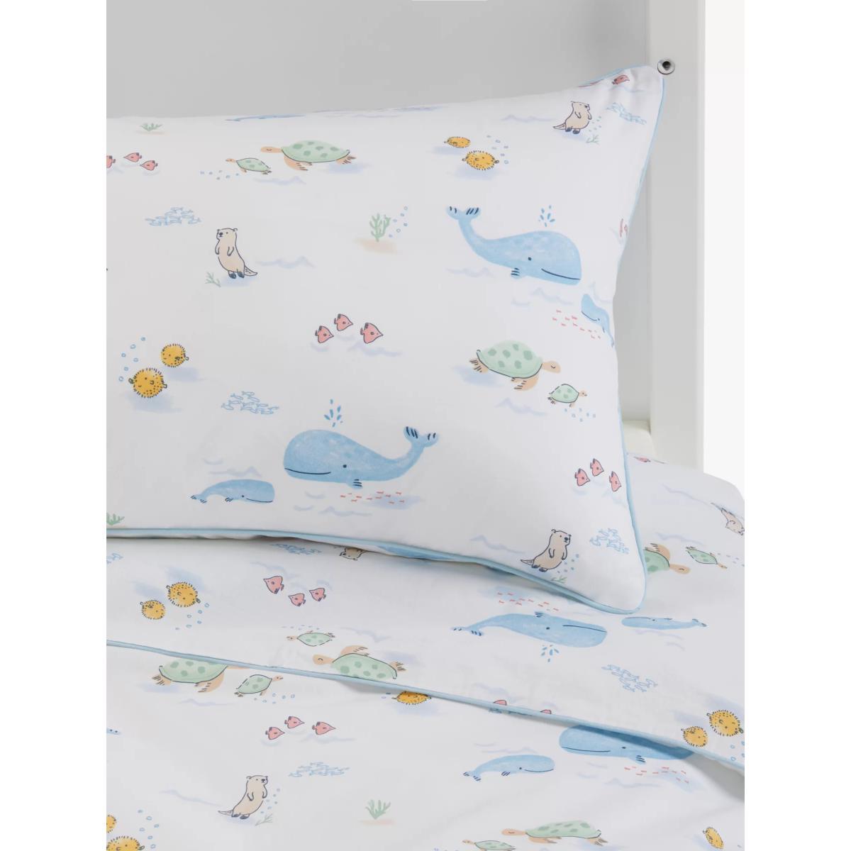 This cosy, comfy cotbed duvet cover and pillowcase set from our Under the Sea collection is carefully made from soft 100% cotton. Part of our coordinated range for your baby's nursery, it is decorated in friendly sea creatures for dreams filled with adventure. Crafted from pure cotton for a breathable feel that won't irritate their skin, it has a 200 thread count to ensure the little one stays comfortable at all times. Please remember: Quilts, duvets and pillows are not suitable for children under 12 months due to the risk of overheating. By buying cotton products from John Lewis & Partners, you're supporting more sustainable cotton farming through the Better Cotton Initiative. BCI is a not-for-profit organisation which exists to make global cotton production better for the people who produce it, better for the environment it grows in, and better for the sector's future. BCI works with partners around the world such as WWF, Solidaridad and Cotton Connect to train farmers to produce cotton more sustainably. Better Cotton is sourced via a principle of "mass balance" and is not physically traceable to end products. However, BCI Farmers benefit from the demand for Better Cotton in equivalent volumes to those we source. Learn more about mass balance here.
