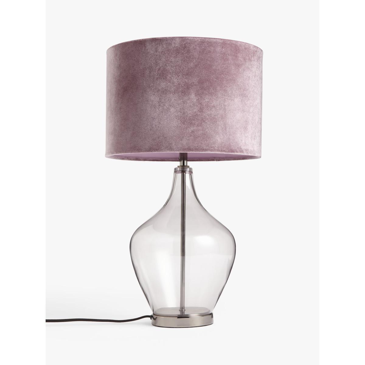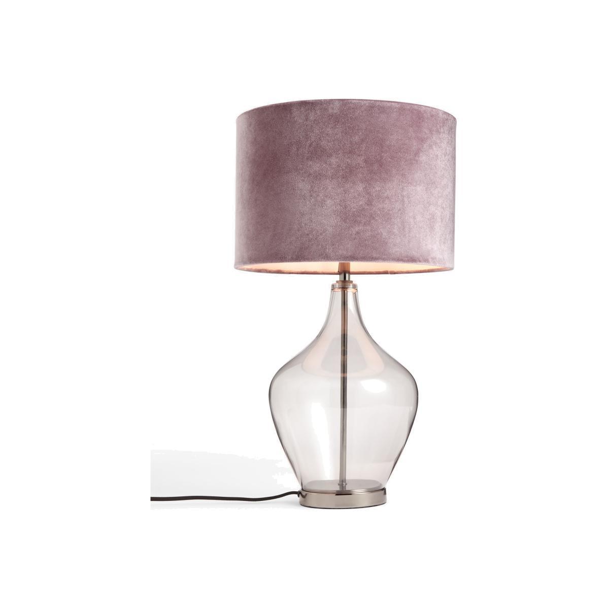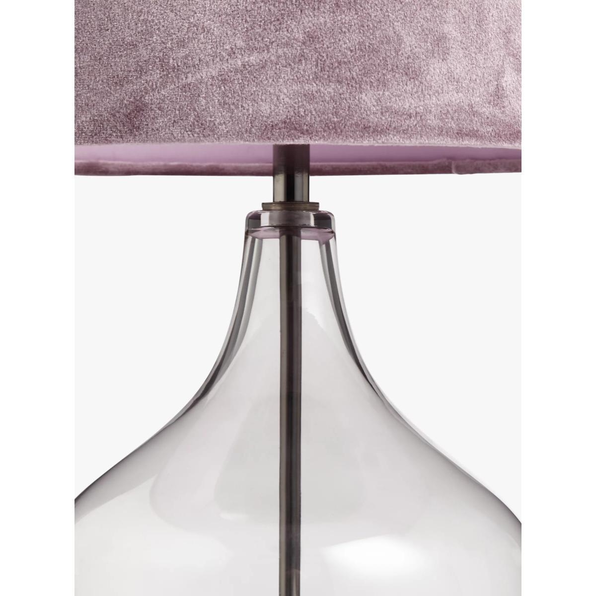 I love this lamp for its versatile, modern aesthetic that blends effortlessly with both contemporary and classic interiors. The gunmetal finish adds a sophisticated touch, making it suitable for living rooms, bedrooms, or even a stylish home office. Its clear glass base introduces a subtle sense of structure and lightness, while the soft, velvet shade provides warm, diffused lighting ideal for creating cosy atmospheres. Practical styling tips include pairing it with neutral tones for a chic, understated look or contrasting it with richer colours and textures for added visual interest. It’s a reliable key piece that combines form and function seamlessly.