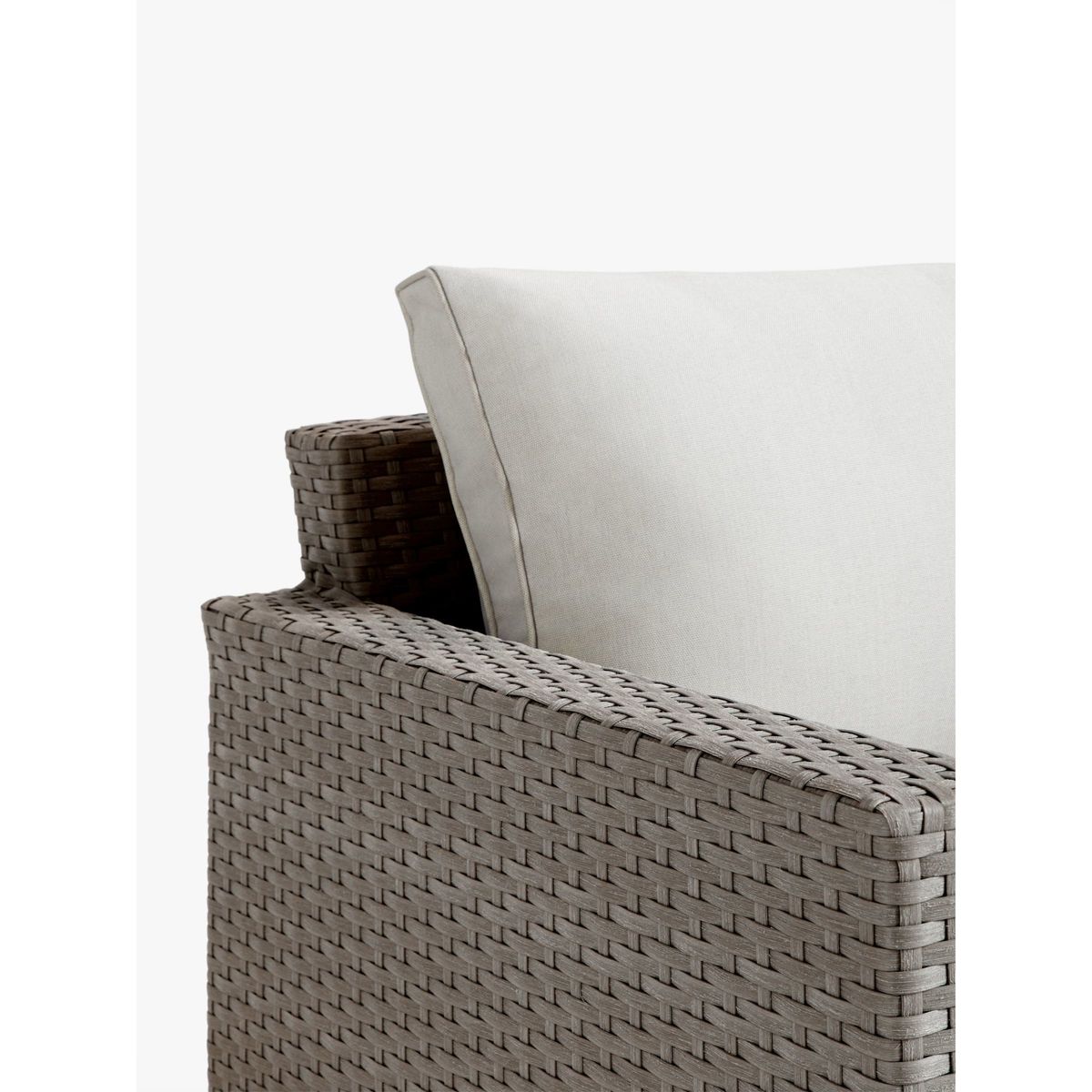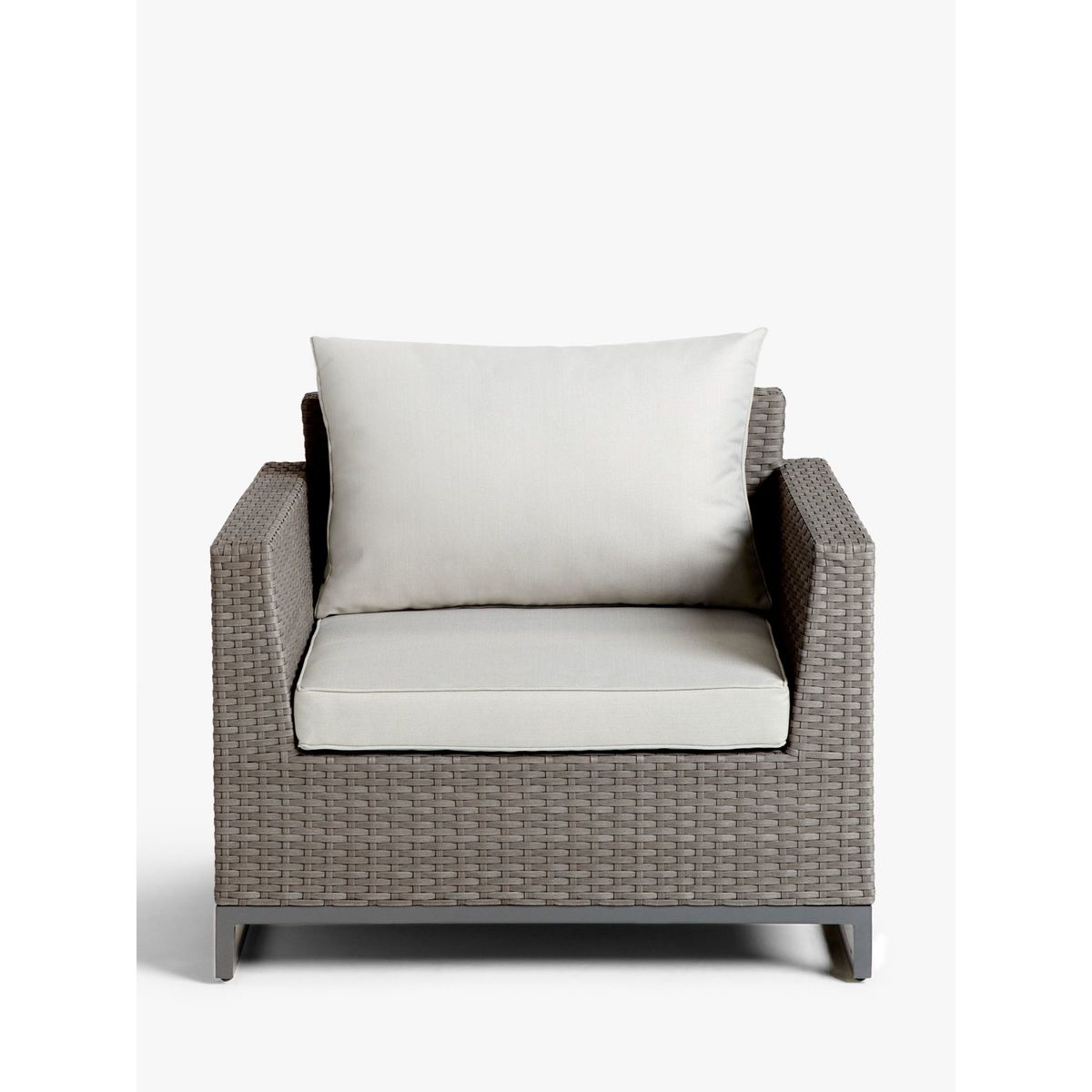 Whether you pair this piece with a table for casual dining, or use it alone to relax in your garden, the Valencia armchair makes a striking addition to your outdoor lounging set up. This woven, rattan-effect chair has a contemporary profile with gently angled sides. The seat and back cushion are covered in an attractive, neutral-coloured shower-resistant fabric. Made with a lightweight yet robust aluminium frame, it can stay in your garden throughout the year, thanks to its weather-resistant synthetic wicker finish. Seating in the Valencia range has been tested to withstand a weight of 20 stone (127kg), exceeding the industry standard. Key benefits: Robust aluminium frame Water-resistant synthetic flat weave Shower-resistant cushions Coordinates with the Valencia range of garden furniture Want to see it first? You may want to see and get a feel for the furniture in one of our shops before ordering. We'll be able to tell you where the range you'd like to view is on display. Choose the perfect outdoor furniture We have a vast selection of furniture for you to choose from which will suit the home or garden. The majority of our furniture ranges have been hand woven using a synthetic wicker; the thinner the weave, the longer it takes for more skilled workers to complete. All weave types are durable so they’ll last throughout the seasons All woven outdoor furniture is UV protected so it will not fade in direct sunlight All woven outdoor furniture is easy to maintain; simple wipe clean with warm water Flat A weave of various widths which offers incredible value for money Half round More detailed with a 3D effect, the half round is a round weave in half which displays a wicker appearance on the top and hollowed underside Double half round A double strand of half round, this is a wider width of weave which achieves a premium appearance Round weave A very tight, premium weave which is available in various widths Rope A selection of our ranges have been made using rope originally made for the fishing industry. The yarn is made up of 10,000 (approx) woven strands with a double core for extreme strength, does not attract mould even if wet for a long time and is UV resistant.