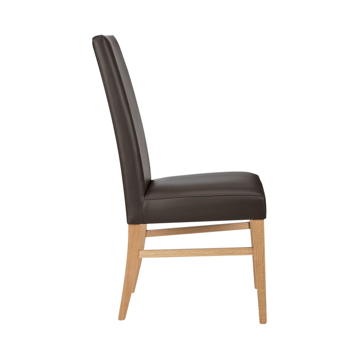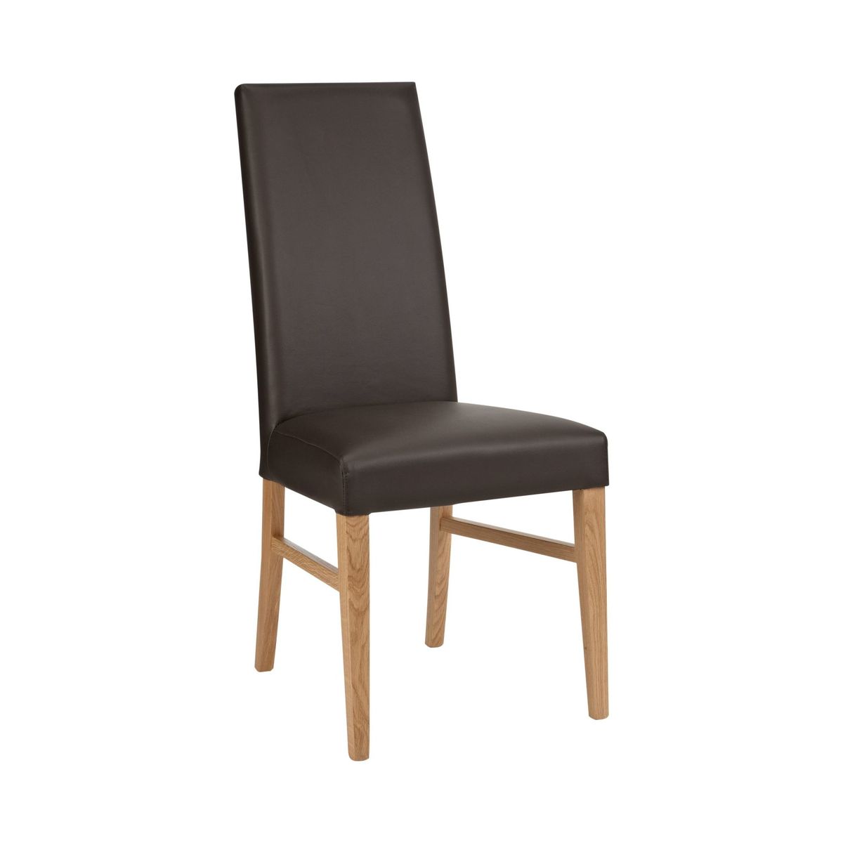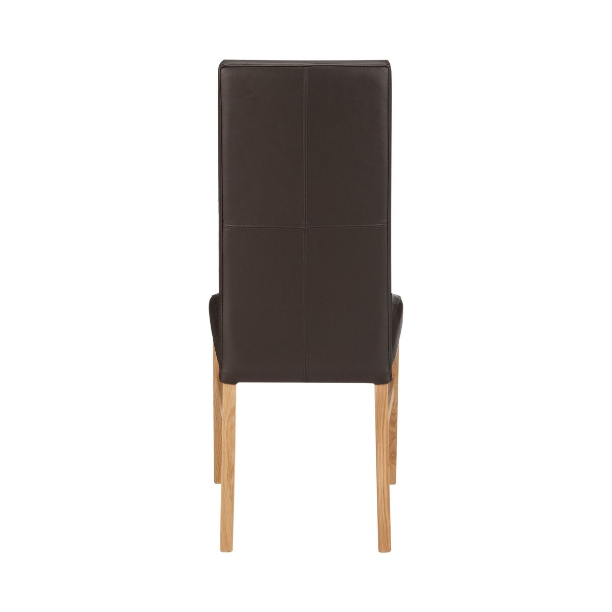 This solid oak dining chair is upholstered in smooth, 100% leather for an urbane, Continental look.