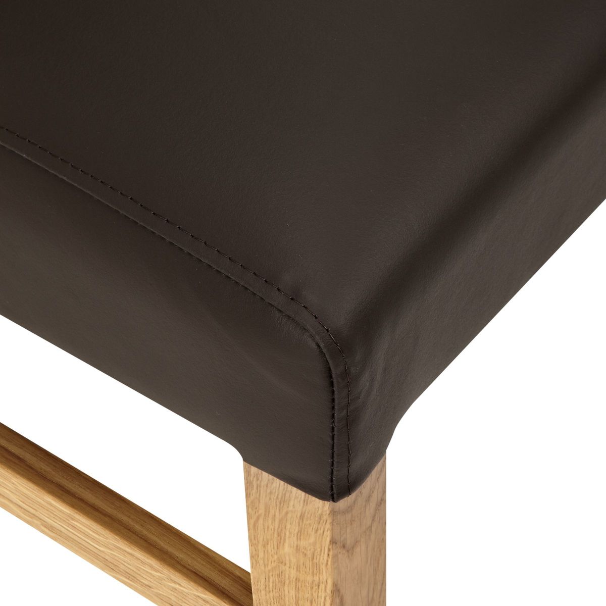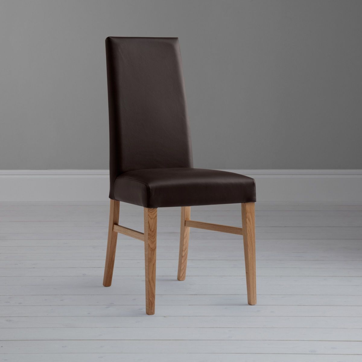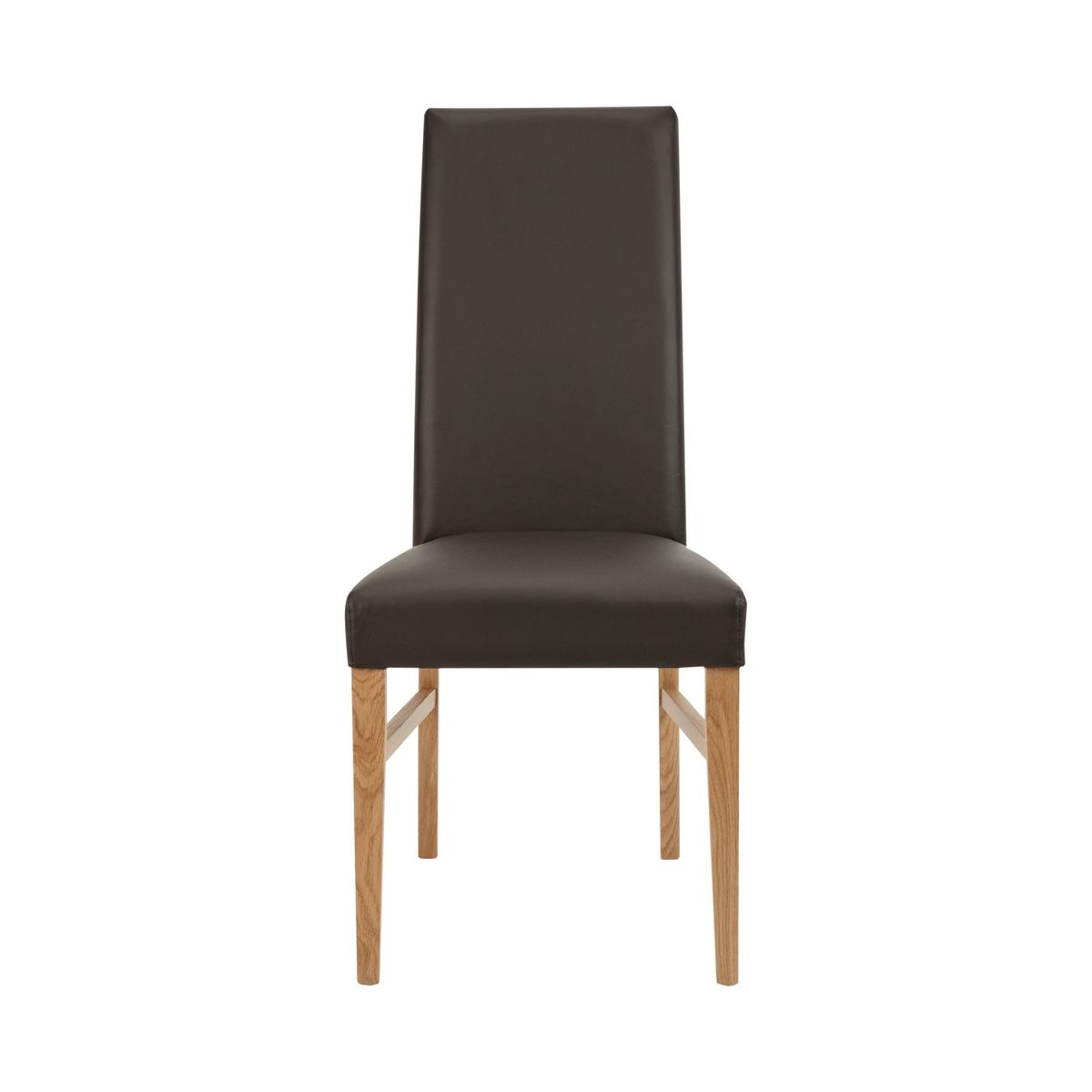 This solid oak dining chair is upholstered in smooth, 100% leather for an urbane, Continental look.