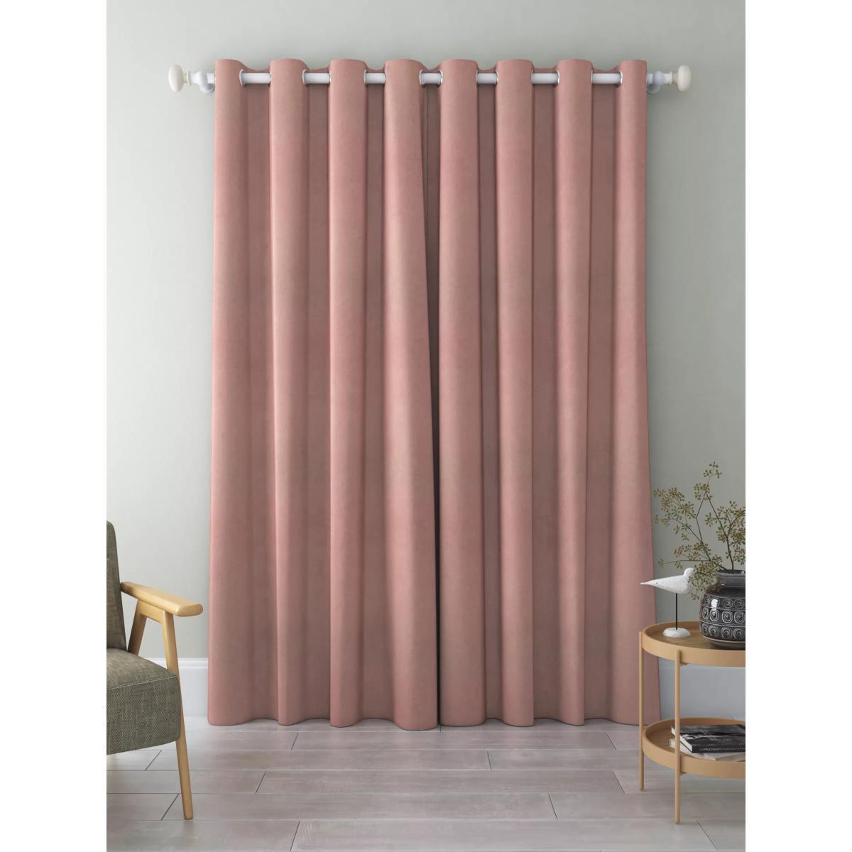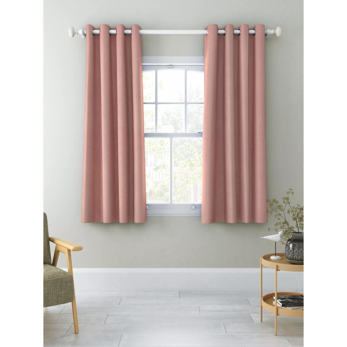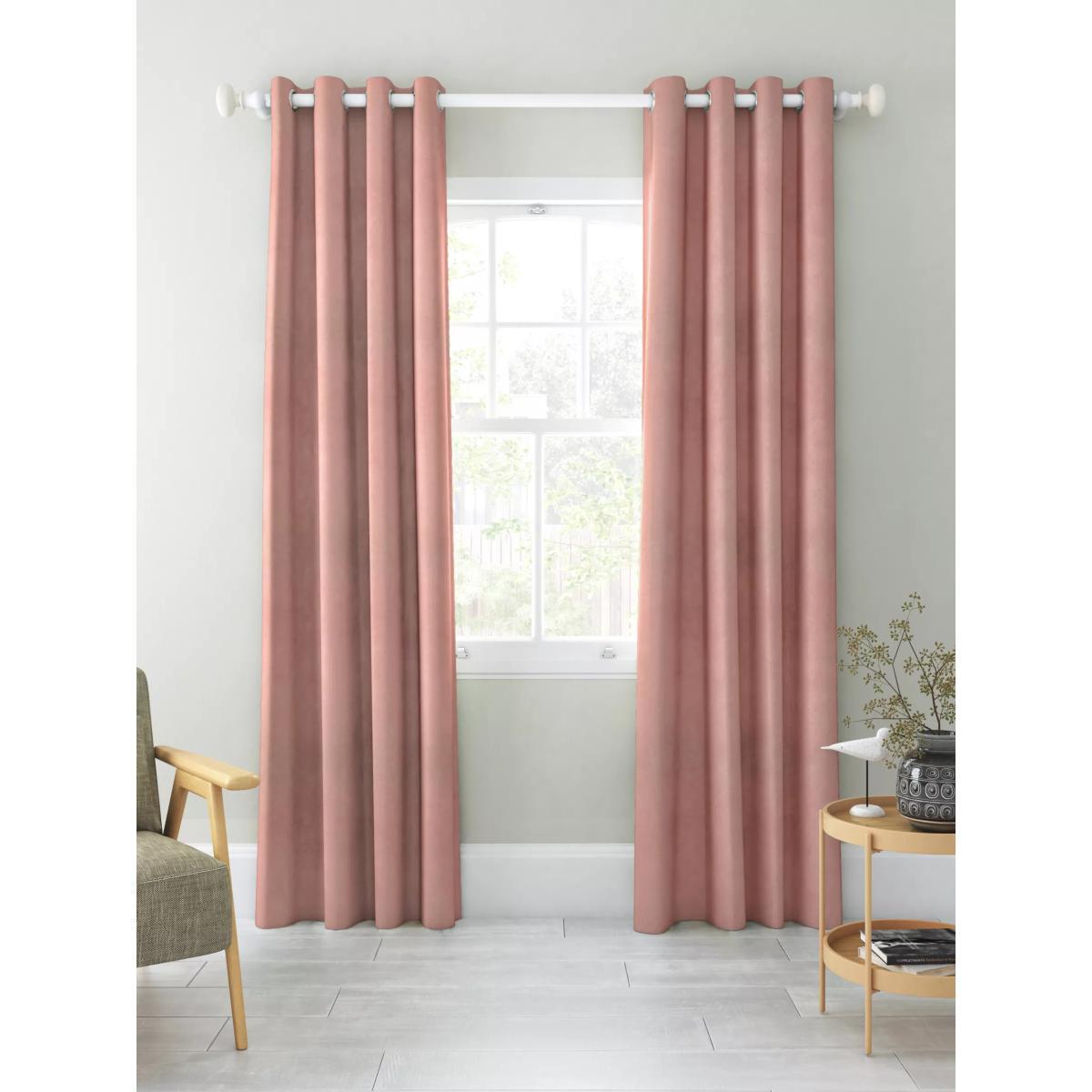 Plain-coloured eyelet curtains made from lustrous polyester velvet. The lining adds the perfect finish, improving the drape and enhancing the vibrancy of the curtain. Warm in winter, cool in summer These curtains are made using a heavyweight fabric which, combined with the lining, gives them the benefit of being thermal. They protect against both heat loss and heat gain, regulating the temperature of your room so you're kept warm in winter and cool in summer. The width stated indicates the size of one curtain panel when laid completely flat. This pack contains two panels, and the track/pole length we've recommended allows for the two panels to be gathered when the curtains are drawn. For a fuller look, increase the curtain width. One pair of 167cm width curtains will fit a curtain track/pole size of 167-223cm One pair of 228cm width curtains will fit a curtain track/pole size 228-304cm Worth knowing... We package our curtains in recycled materials to keep them protected whilst they make their way to you. This means that when they arrive there could be some creases in them. We recommend you hang them for a few days to allow them to flatten and for the creases to fall out. If after this period your curtains still show signs of being folded then follow the ironing instructions on the back of the packaging. Be aware that each style of curtain has different ironing instructions, including heat limitations according to the fabric, so do make sure you follow the guidance provided to get the best results. Do you need a curtain pole and accessories? Shop them here.