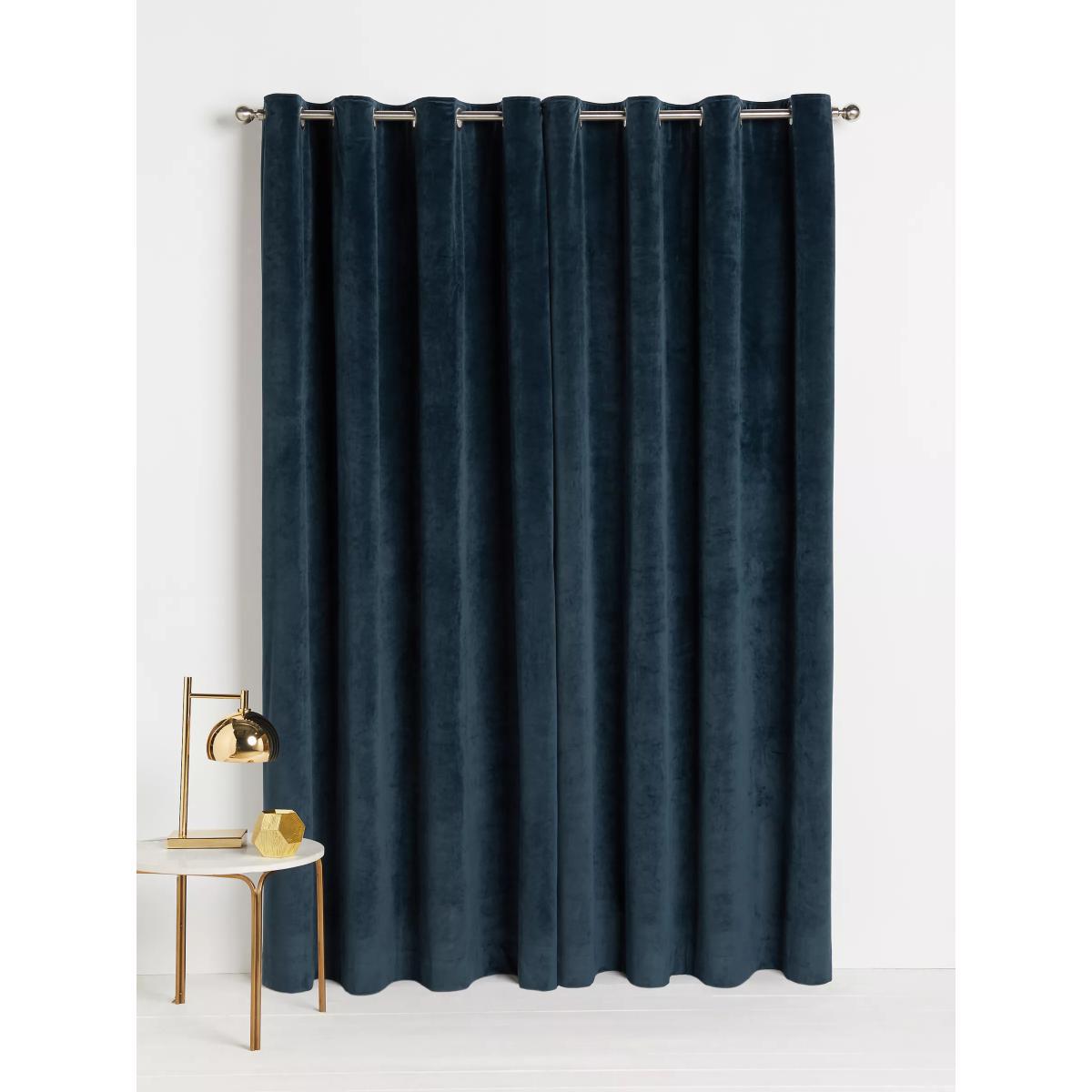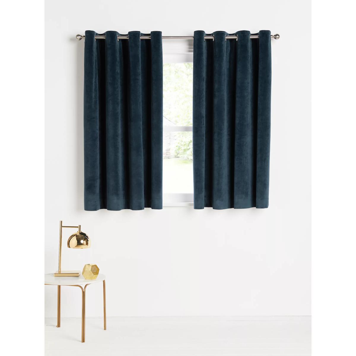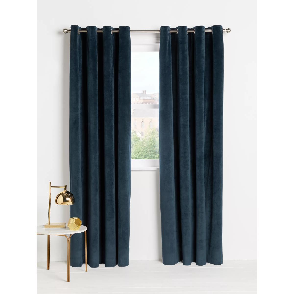 Plain-coloured eyelet curtains made from lustrous polyester velvet. The lining adds the perfect finish, improving the drape and enhancing the vibrancy of the curtain. Warm in winter, cool in summer These curtains are made using a heavyweight fabric which, combined with the lining, gives them the benefit of being thermal. They protect against both heat loss and heat gain, regulating the temperature of your room so you’re kept warm in winter and cool in summer. The width stated indicates the size of one curtain panel when laid completely flat. This pack contains two panels, and the track/pole length we've recommended allows for the two panels to be gathered when the curtains are drawn. For a fuller look, increase the curtain width. One pair of 167cm width curtains will fit a curtain track/pole size of 167-223cm One pair of 228cm width curtains will fit a curtain track/pole size 228-304cm Worth knowing... We package our curtains in recycled materials to keep them protected whilst they make their way to you. This means that when they arrive there could be some creases in them. We recommend you hang them for a few days to allow them to flatten and for the creases to fall out. If after this period your curtains still show signs of being folded then follow the ironing instructions on the back of the packaging. Be aware that each style of curtain has different ironing instructions, including heat limitations according to the fabric, so do make sure you follow the guidance provided to get the best results. Do you need a curtain pole and accessories?