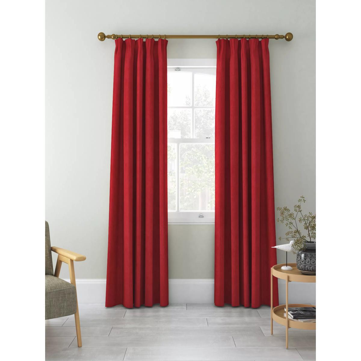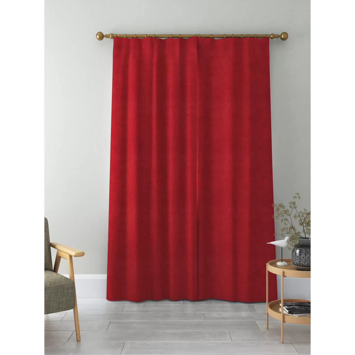 Plain-coloured pencil pleat curtains made from lustrous polyester velvet. The lining adds the perfect finish, improving the drape and enhancing the vibrancy of the curtain. Warm in winter, cool in summer These curtains are made using a heavyweight fabric which, combined with the lining, gives them the benefit of being thermal. They protect against both heat loss and heat gain, regulating the temperature of your room so you're kept warm in winter and cool in summer. Choosing the right size These curtains can be hung with a pole or track using curtain hooks (not included). There are three hook positions on the heading, allowing you to choose how your curtains sit against the track or pole. For example, if you're using a track you may want to use the middle or lower row of hooks to cover the track, whereas if you're using a pole you may want to use the top row of hooks so the curtains hang below the rings. The specified drop is taken from the top row of hook pockets to the bottom edge of the curtain. The width stated indicates the size of one curtain panel when laid completely flat. This pack contains two panels, and the track/pole length we've recommended allows for the two panels to be gathered when the curtains are drawn. For a fuller look, increase the curtain width. One pair of 167cm width curtains will fit a curtain track/pole size of 167-223cm One pair of 228cm width curtains will fit a curtain track/pole size 228-304cm Worth knowing... We package our curtains in recycled materials to keep them protected whilst they make their way to you. This means that when they arrive there could be some creases in them. We recommend you hang them for a few days to allow them to flatten and for the creases to fall out. If after this period your curtains still show signs of being folded then follow the ironing instructions on the back of the packaging. Be aware that each style of curtain has different ironing instructions, including heat limitations according to the fabric, so do make sure you follow the guidance provided to get the best results. Do you need a curtain pole and accessories?