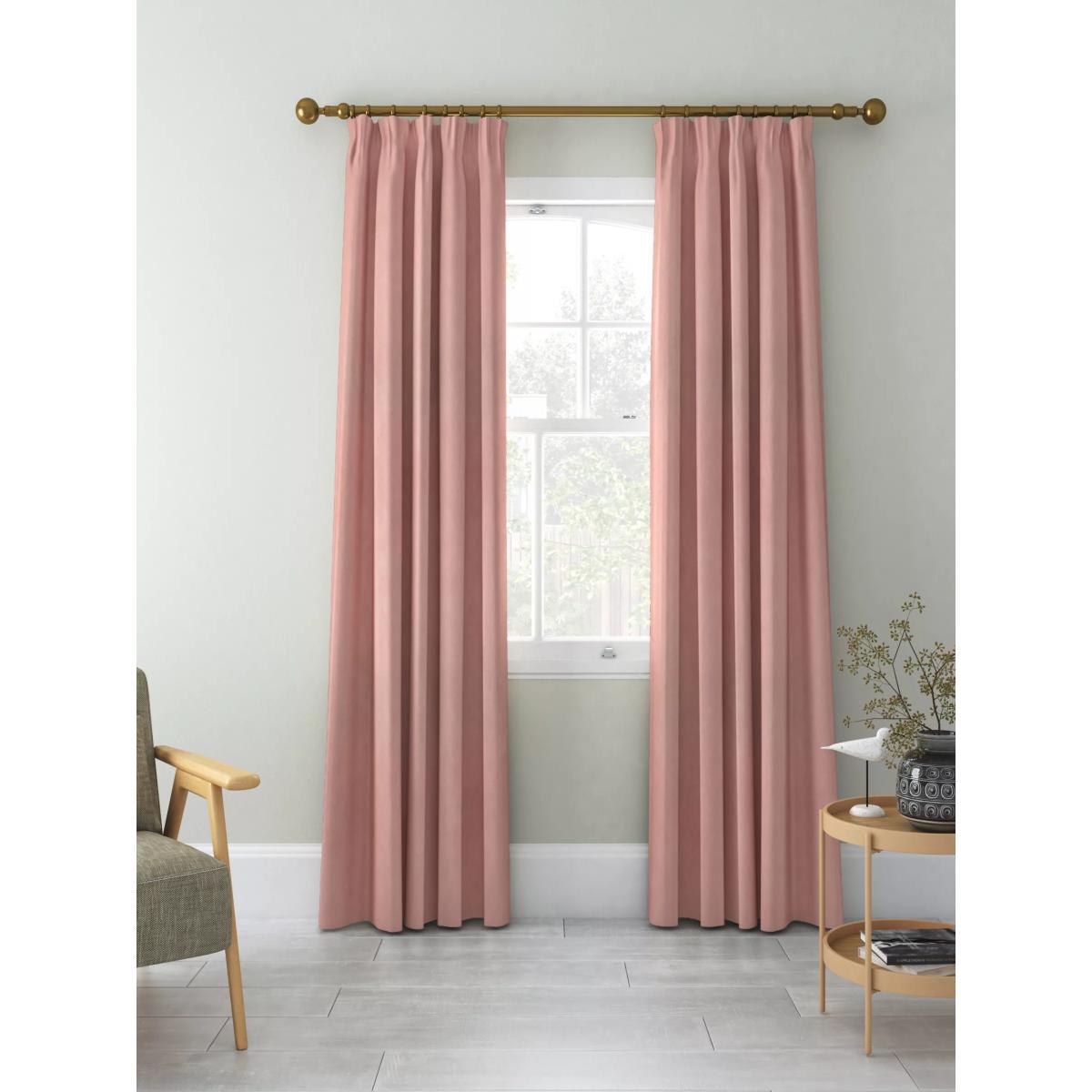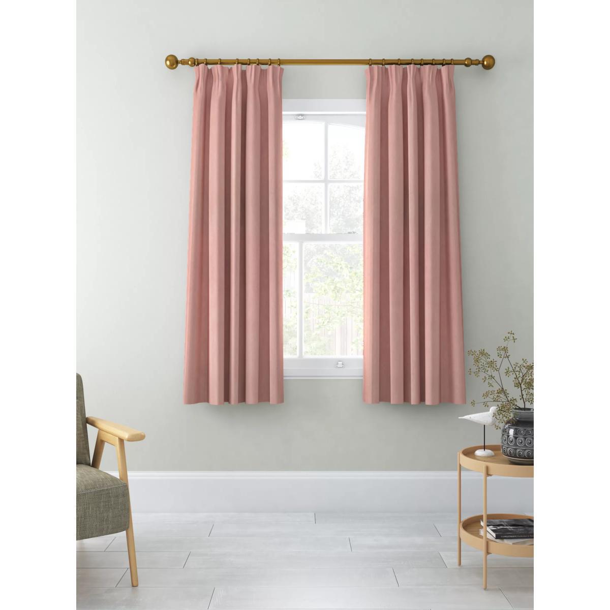 Plain-coloured pencil pleat curtains made from lustrous polyester velvet. The lining adds the perfect finish, improving the drape and enhancing the vibrancy of the curtain. Warm in winter, cool in summer These curtains are made using a heavyweight fabric which, combined with the lining, gives them the benefit of being thermal. They protect against both heat loss and heat gain, regulating the temperature of your room so you're kept warm in winter and cool in summer. Choosing the right size These curtains can be hung with a pole or track using curtain hooks (not included). There are three hook positions on the heading, allowing you to choose how your curtains sit against the track or pole. For example, if you're using a track you may want to use the middle or lower row of hooks to cover the track, whereas if you're using a pole you may want to use the top row of hooks so the curtains hang below the rings. The specified drop is taken from the top row of hook pockets to the bottom edge of the curtain. The width stated indicates the size of one curtain panel when laid completely flat. This pack contains two panels, and the track/pole length we've recommended allows for the two panels to be gathered when the curtains are drawn. For a fuller look, increase the curtain width. One pair of 167cm width curtains will fit a curtain track/pole size of 167-223cm One pair of 228cm width curtains will fit a curtain track/pole size 228-304cm Worth knowing... We package our curtains in recycled materials to keep them protected whilst they make their way to you. This means that when they arrive there could be some creases in them. We recommend you hang them for a few days to allow them to flatten and for the creases to fall out. If after this period your curtains still show signs of being folded then follow the ironing instructions on the back of the packaging. Be aware that each style of curtain has different ironing instructions, including heat limitations according to the fabric, so do make sure you follow the guidance provided to get the best results. Do you need a curtain pole and accessories?