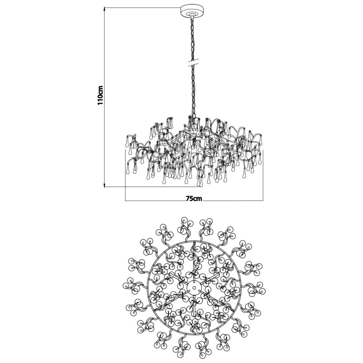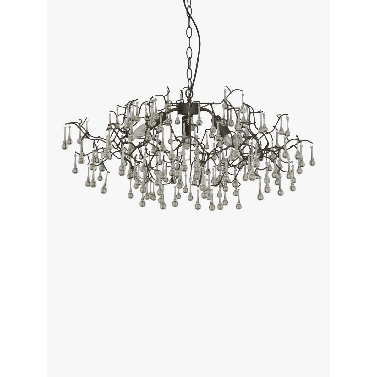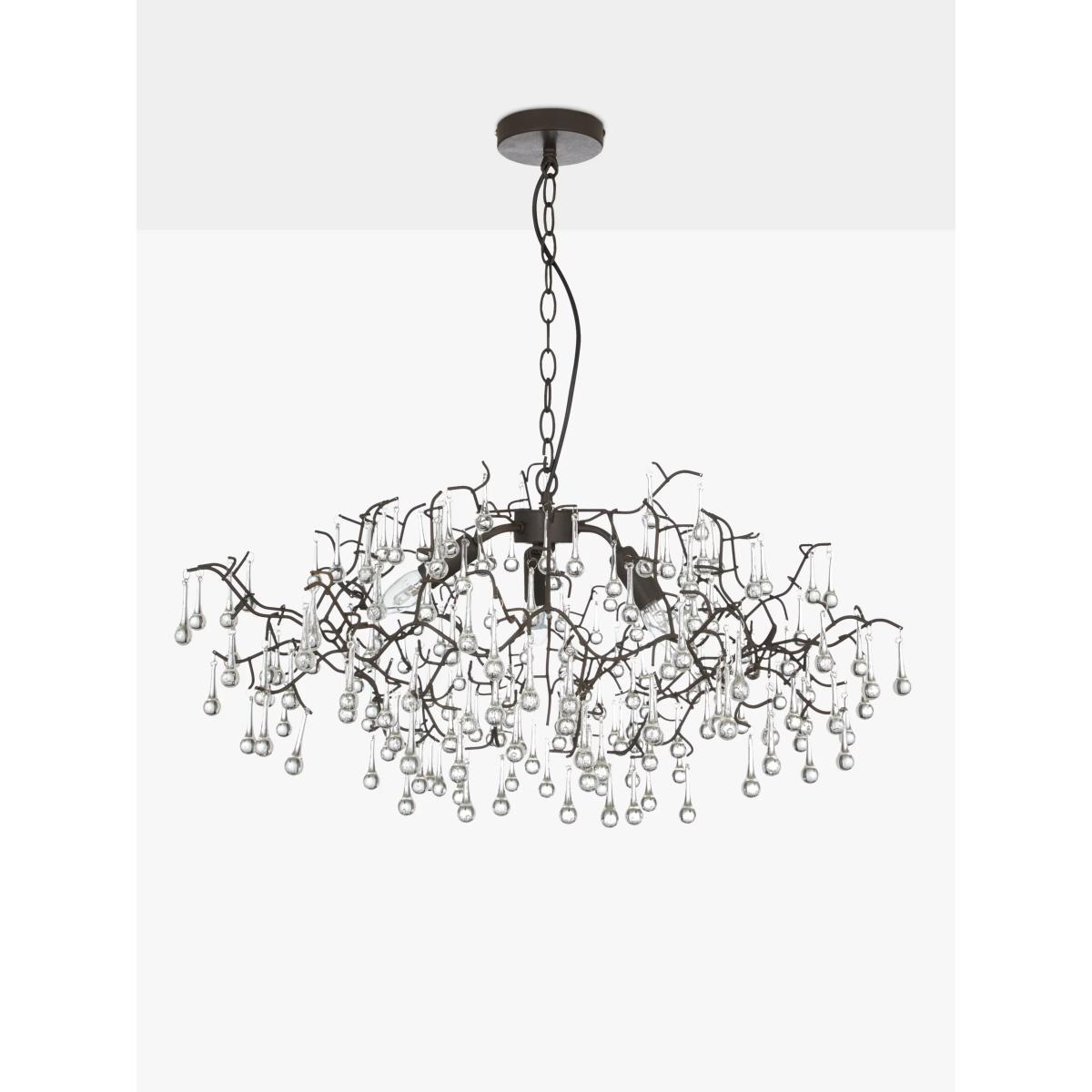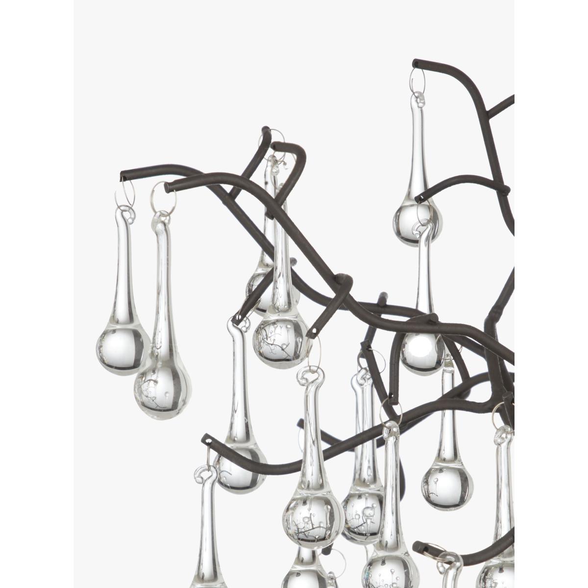 Branch-like lines, topped with moulded glass raindrops, create this beautiful ethereal light pendant. An organic centrepiece, dangled with shards of glass that reflect and refract the light, to create a spectrum of dancing colours, it would look perfect in a period property.