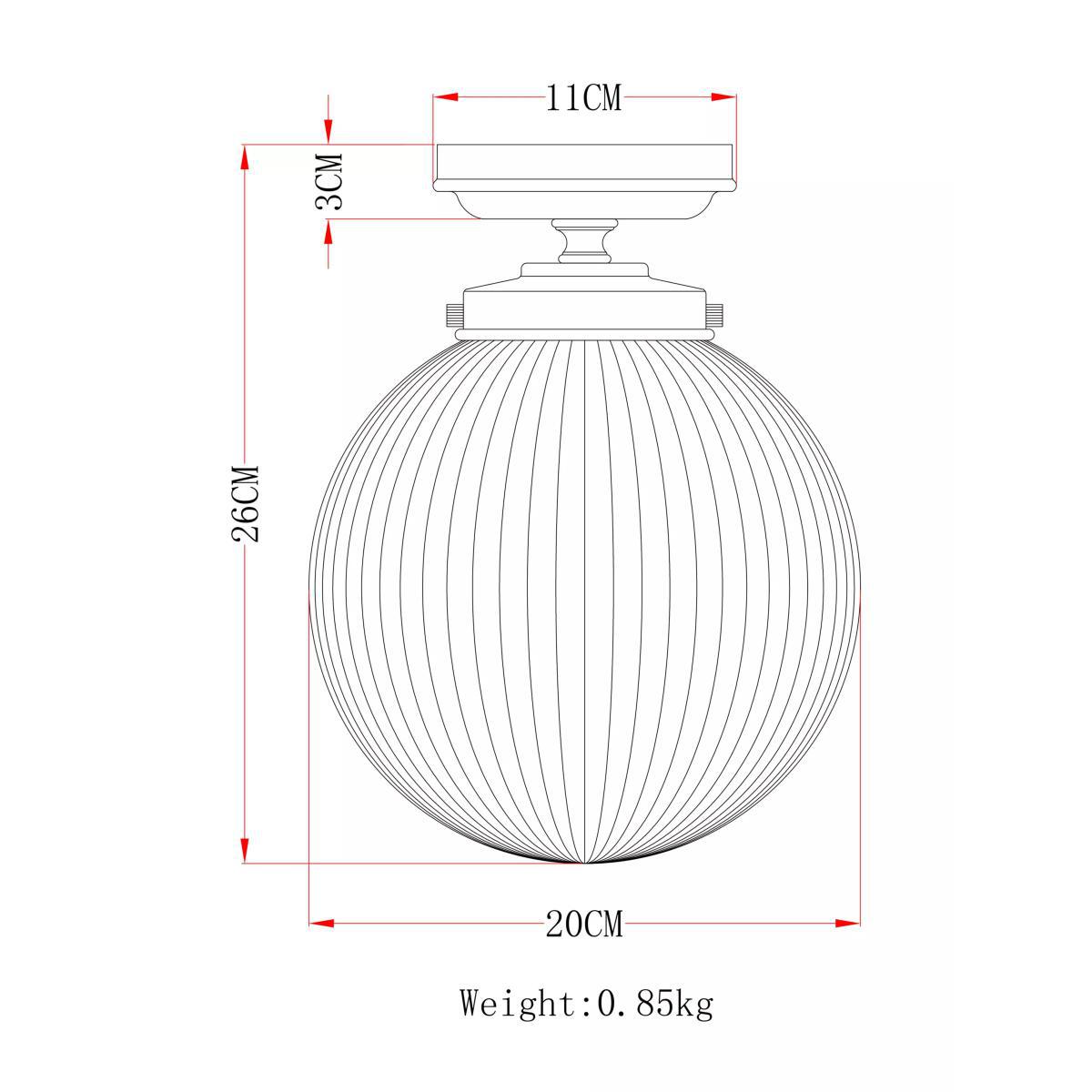This vintage-style light features a globe shaped glass shade and matt-finished metal fitting. The glass shade is decorated with ribbed detail and will help to create a warm glow when illuminated. Its IP44 rating ensures its suitability outdoors and resistance to splashing water.