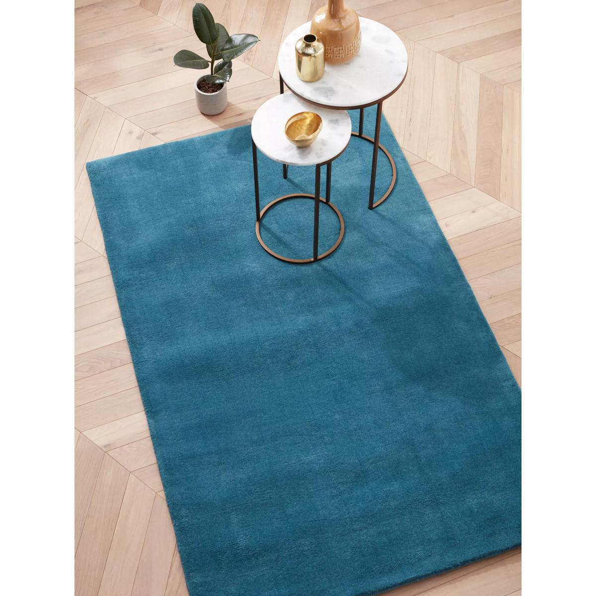 The simple Wellington Rug will bring a touch of comfort as well as style to your home décor. Hand tufted by skilled artisans using 100% wool sourced from India, this rug is wonderfully soft and the solid, block colour design will perfectly offset your other furnishings as part of your wider colour scheme. The John Lewis Foundation: This rug has been handmade in an area of India where not all children have access to education. Through the John Lewis Foundation, which was set up to help improve the well-being of disadvantaged communities, we have worked with a local charity Care & Fair India to fund the building and running of a new school offering secondary education to teenage girls who would not otherwise have this opportunity. John Lewis Foundation, a registered charity: 11181620.The John Lewis Foundation was established to benefit communities in the UK and overseas. Since 2007, it's supported 50 charities in 9 countries promoting education, enterprise and employment. About your new rug We recommend. It prevents your rug from moving underfoot and protects against colour transfer to the floor As this rug is made using natural fibres, shedding is to be expected as this is a natural characteristic of wool. This will decrease over time if care instructions are followed accordingly and shouldn’t affect your rug’s lifespan or performance. When you first get your rug, please use the brush attachment on your vacuum cleaner whilst the shedding dies down. After that, when vacuuming your rug, use suction only. Rotating brushes may damage the fibres. Blot any spills with a clean, dry cloth. Do not rub or use harsh detergents. Latex backed therefore not suitable for underfloor heating. Specialist cleaning recommended. Attend to spillages immediately and blot with a clean, dry cloth to prevent staining. Dilute a small amount of appropriate carpet shampoo in water. Dampen a colourfast cloth in the diluted shampoo solution and dab the rug, lightly agitating, moving in the direction of the pile. Treat the whole rug and not just the affected area. To restore the appearance of the affected area, use a soft bristled brush to gently comb in the direction of the pile. Allow the rug to thoroughly dry.