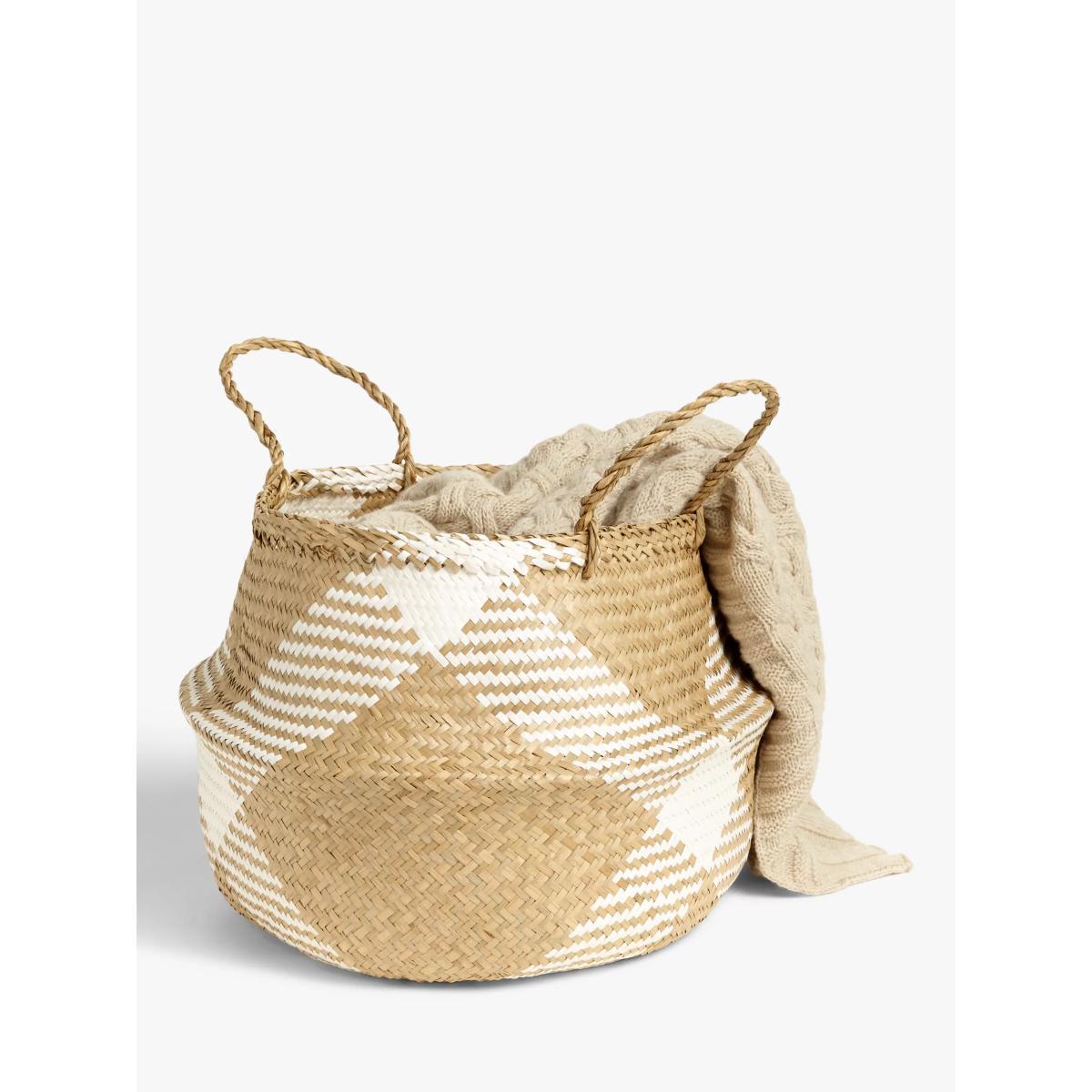I love this basket’s natural, simplistic look-it’s a versatile piece that adds texture and a sense of warmth to any space. Its neutral white pattern combined with the seagrass material makes it particularly well-suited to coastal, Scandi, or rustic interiors, where earthy tones and organic textures are key. Practically, it’s great for decluttering; you could use it for blankets in a living room, laundry in a utility space, or storage for children's toys. For styling, consider placing it on a wooden floor with other natural materials or using it as a houseplant holder to add visual interest. Its lightweight handles also make it easy to move around, offering both function and style in one.