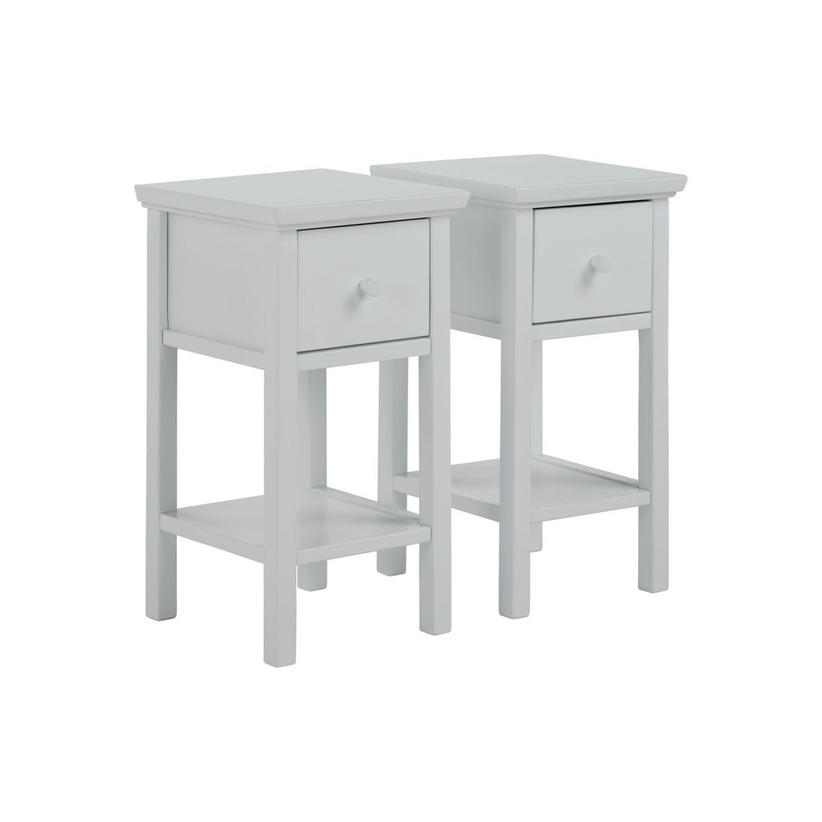 Don't compromise on style or quality if you have limited space in your bedroom. This set of two bedside tables is just right for smaller rooms and we've made them from robust pine wood and veneers. The design is simple, but timeless and includes a drawer and lower shelf. Available in a painted finish for a more modern look or a natural finish that highlights the authentic wood grains. Perfect for styling on either side of your bed. Want to see it first? You may want to see and get a feel for the furniture in one of our shops before ordering. We'll be able to tell you where the range you'd like to view is on display. With great prices and great design, our new brand offers style and quality for modern living today. Whatever you need, there's joy to be found in ANYDAY.