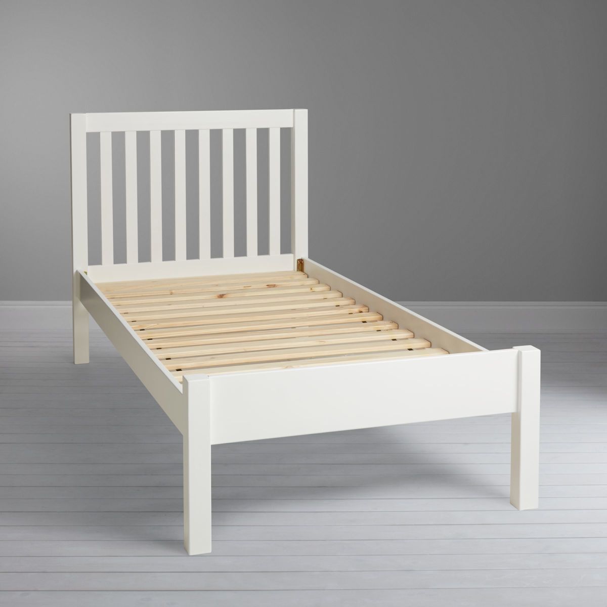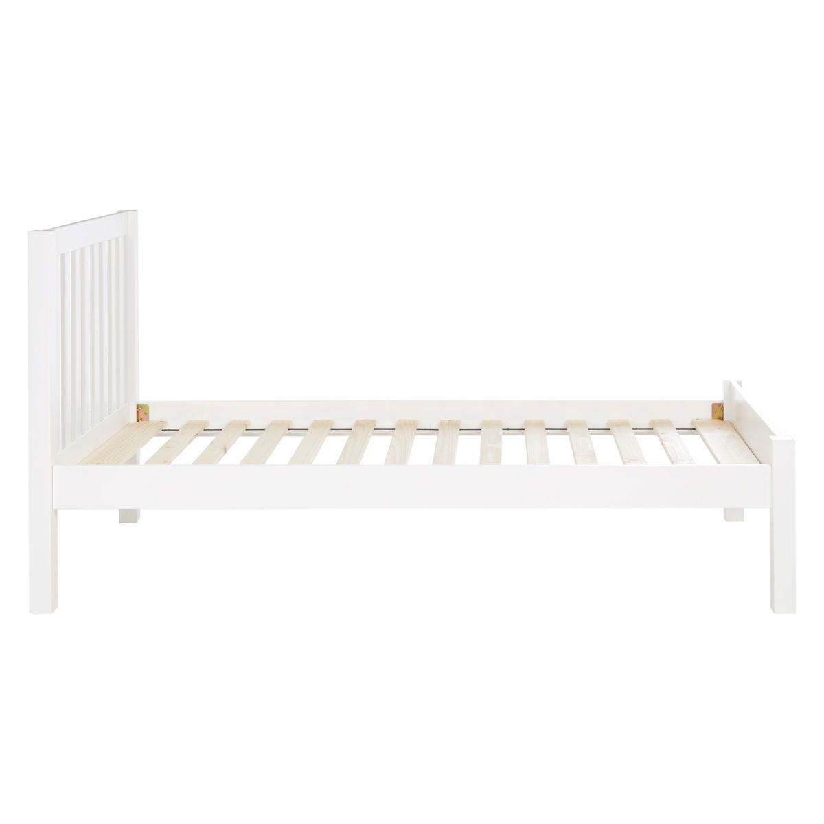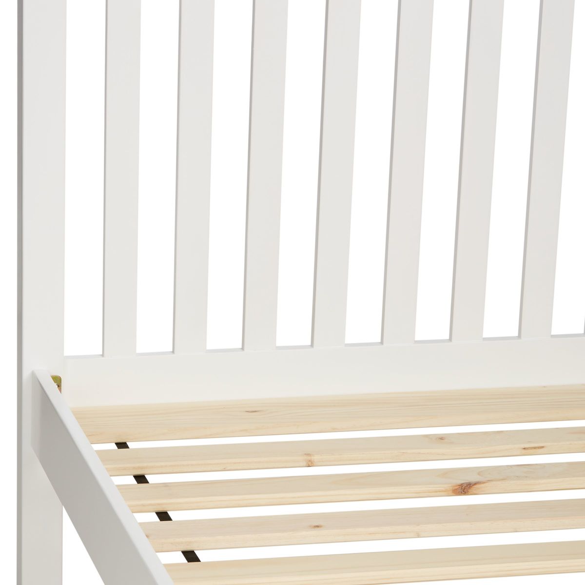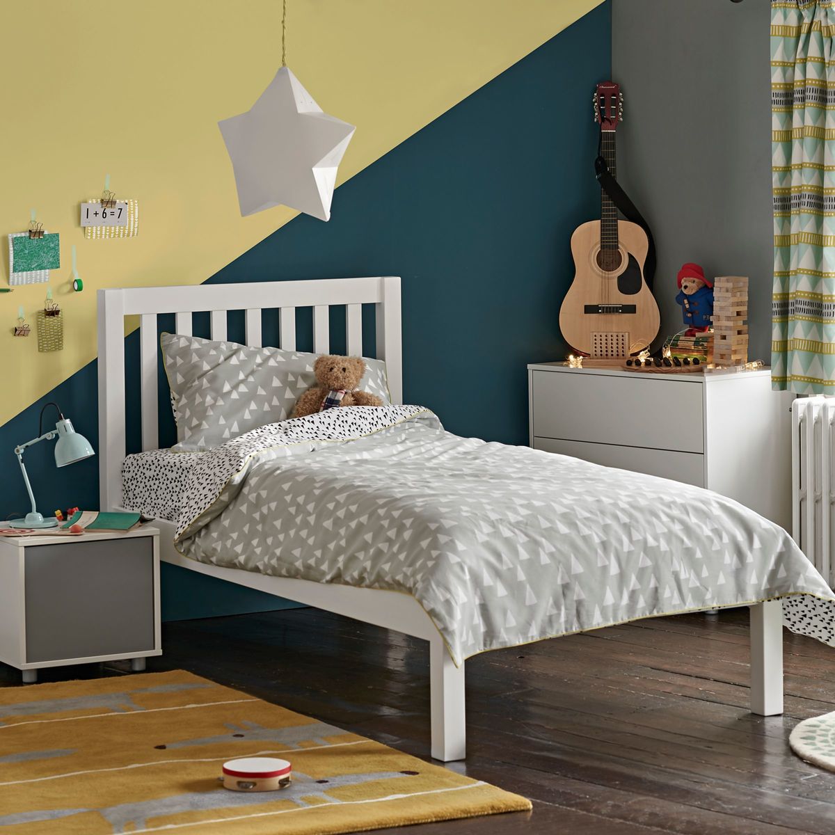 It's easy to assemble this bed frame, which we've made from hard-wearing pine wood. We like its simple, clean-lined design that features a slatted headboard, while solid slats provide a firmer base for your mattress. Available in a painted finish for a more modern look or a natural finish that highlights the authentic wood grains. Worth Knowing: Child Compliant bed frame This bed conforms to BS 8509:2008+A1:2011 (Childrens beds for domestic use. Safety requirements and test methods). We recommend it is used with a standard single mattress, L190 x W90cm. Not suitable for children under the age of 4 years. Want to see it first? You may want to see and get a feel for the furniture in one of our shops before ordering. We'll be able to tell you where the range you'd like to view is on display. With great prices and great design, our new brand offers style and quality for modern living today. Whatever you need, there’s joy to be found in ANYDAY.