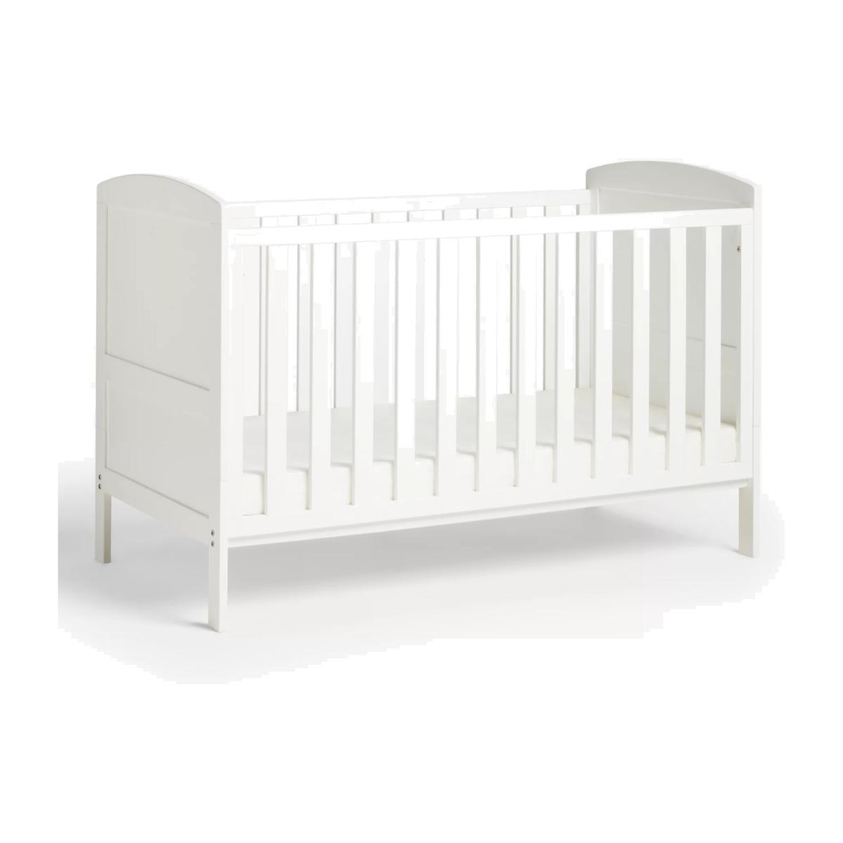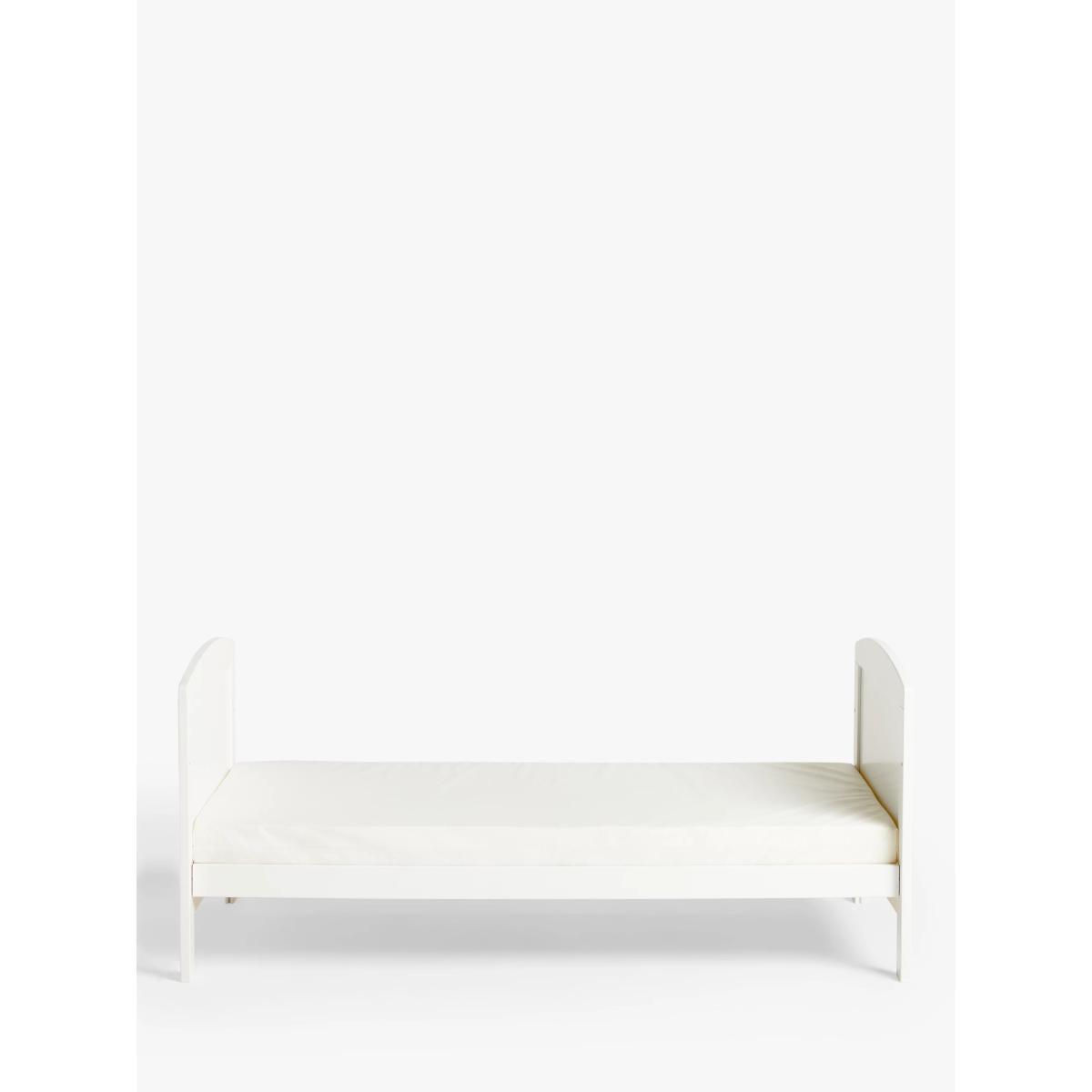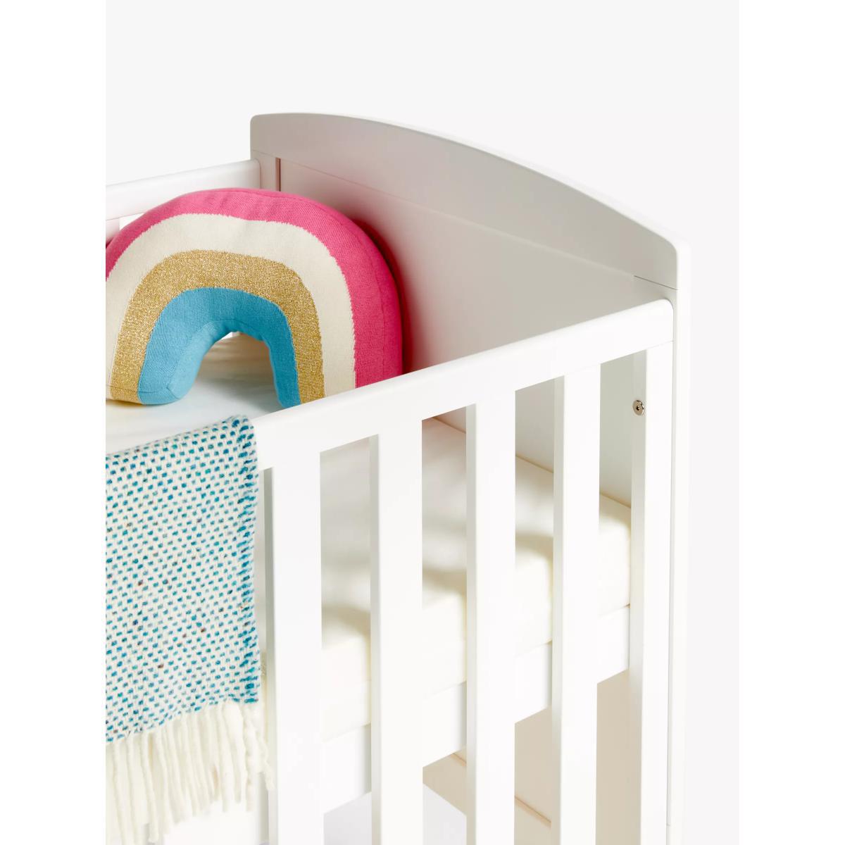 Designed with a simple contemporary finish that's also functional, our John Lewis & Partners Wilton cotbed offers a place of peaceful sleep for your little one. Able to grow with your child, it has 3 mattress base positions that can be adjusted to suit as your child goes from newborn to toddler. It can also be converted into a toddler bed for even longer use. The head and foot end becomes smaller when removing the top section and placing the plinth over bottom section. Pair with the matching Wilton dresser and wardrobe to complete your nursery. This cot bed requires a standard 140 x 70cm mattress (sold separately). Good to know: The coted comes packed in two boxes. Box 1 measures L99 x W79 xH7cm and weighs 17.5kg and Box2 measures L144 x W73.5 x H9cm and weighs 9.5kg.