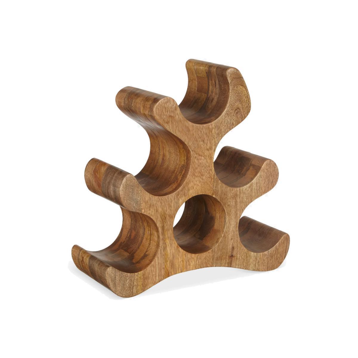This 6 bottle wine rack will look beautiful on a kitchen worktop. The asymmetrical, organic shape is hand carved, by artisans, from mango wood.