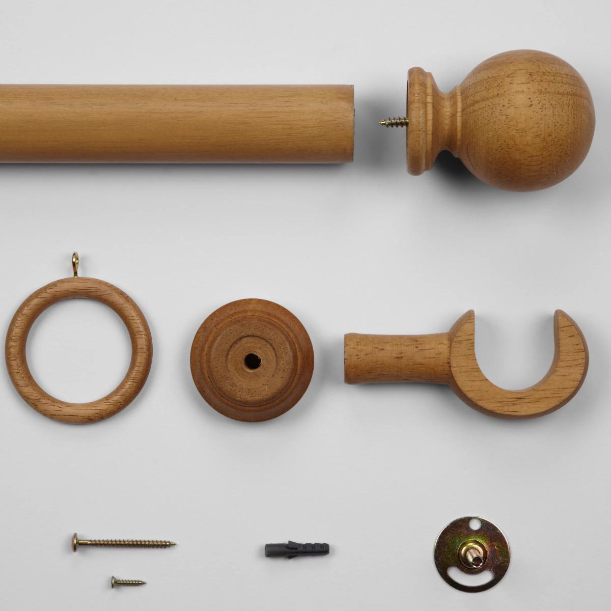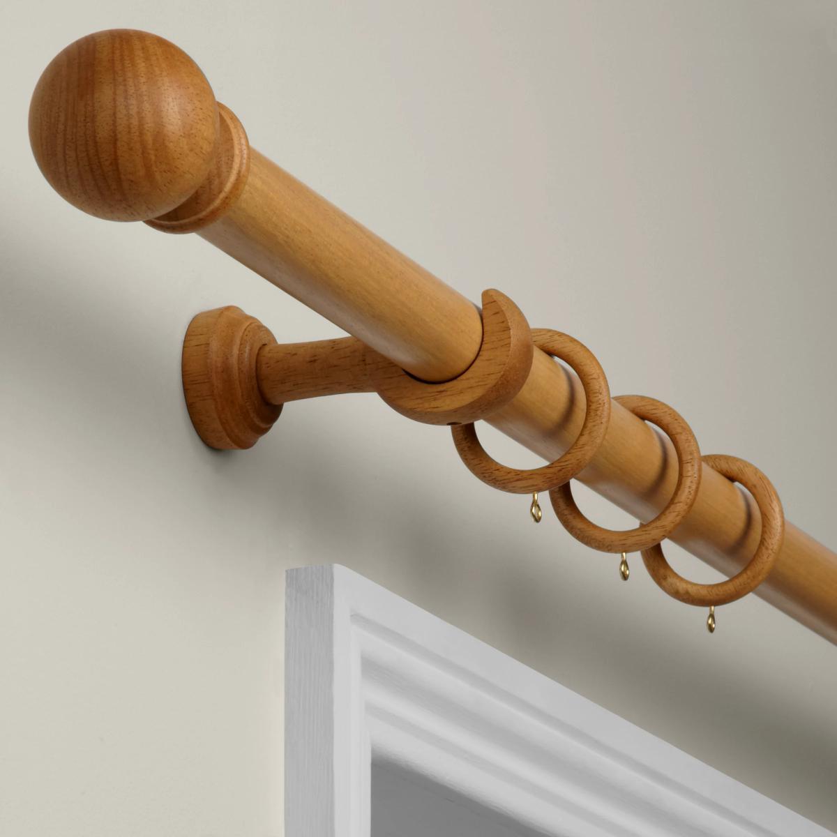 A wooden curtain pole kit with attractive stained finishes and classic ball finials. This kit contains all the accessories and fittings you'll need to fit your pole, so all that's left is to choose your curtains. Comprehensive instructions offer a step-by-step guide, whether you're using the pole as it comes or cutting it to size. Kit includes: L150cm L300cm Curtain pole 1 2 plus a connector Brackets 2 3 Cover plates 2 3 Finials 2 2 Rings 15 30 Other Screws and wall plugs Screws, wall plugs and a double-ended joining screw Additional rings are available separately.