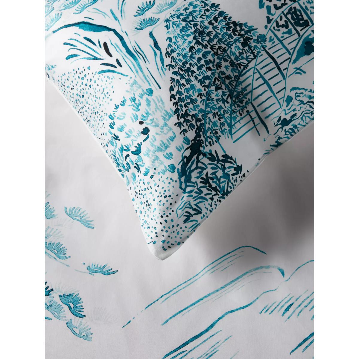 This duvet cover set features a printed, Japanese garden design and a plain reverse. The painterly strokes and restful shades of blue are perfect for a bedroom. Made from soft and smooth 200 thread count cotton sateen, the all-natural fibre will help keep you cool and comfortable for a great night's sleep. The single set comes with one standard pillowcase, while the double, king and super king sets come with two standard pillowcases. Have you thought about sheeting? Shop. Bedding sizes To fit duvet/pillow size (cm) Standard pillowcase, L75 x W50cm Single duvet cover, L200 x W135cm Double duvet cover, L200 x W200cm King duvet cover, L220 x W225cm Super king duvet cover, L220 x W260cm