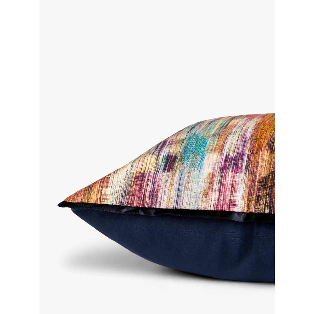 I love the Zia Stripe Cushion for its vibrant, abstract pattern that instantly adds colour and energy to any space. It's versatile enough to work well in contemporary living rooms or bedrooms, especially when paired with neutral tones to let the print stand out. For a layered look, try combining it with solid-coloured cushions in shades like navy, beige, or grey. Practical styling tips include placing it on a plain sofa or armchair for a pop of colour, and using it as a focal piece in a more muted or minimalist setting. Its size and bold design make it a statement piece that can refresh your interiors without overwhelming the space.