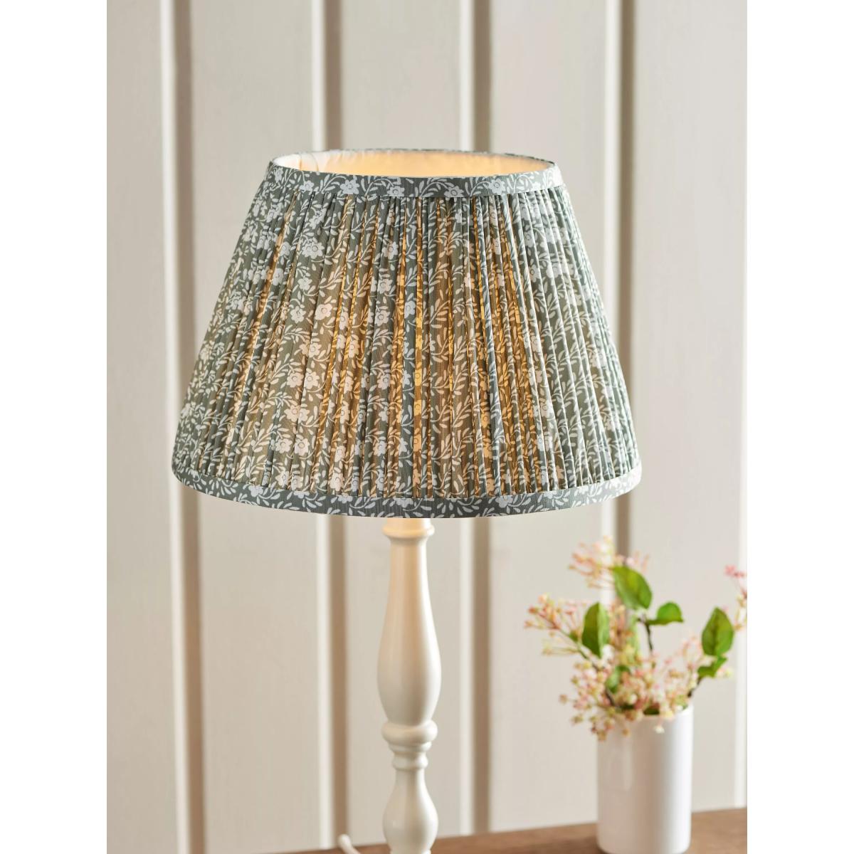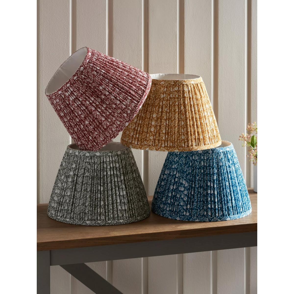 This bespoke, digitally printed lampshade is suitable for both table lamp bases and ceiling fittings. It's made from a faux silk fabric that's been gathered and pleated by hand into a tapered cylinder shape. Its heritage-inspired pattern will make an instant statement in your space.