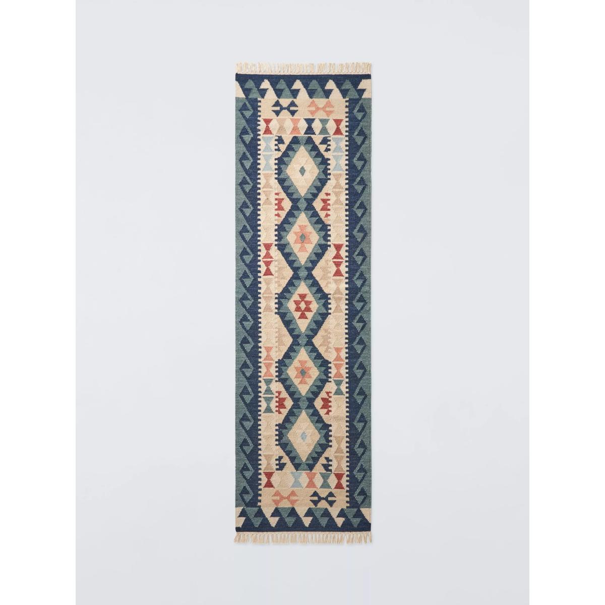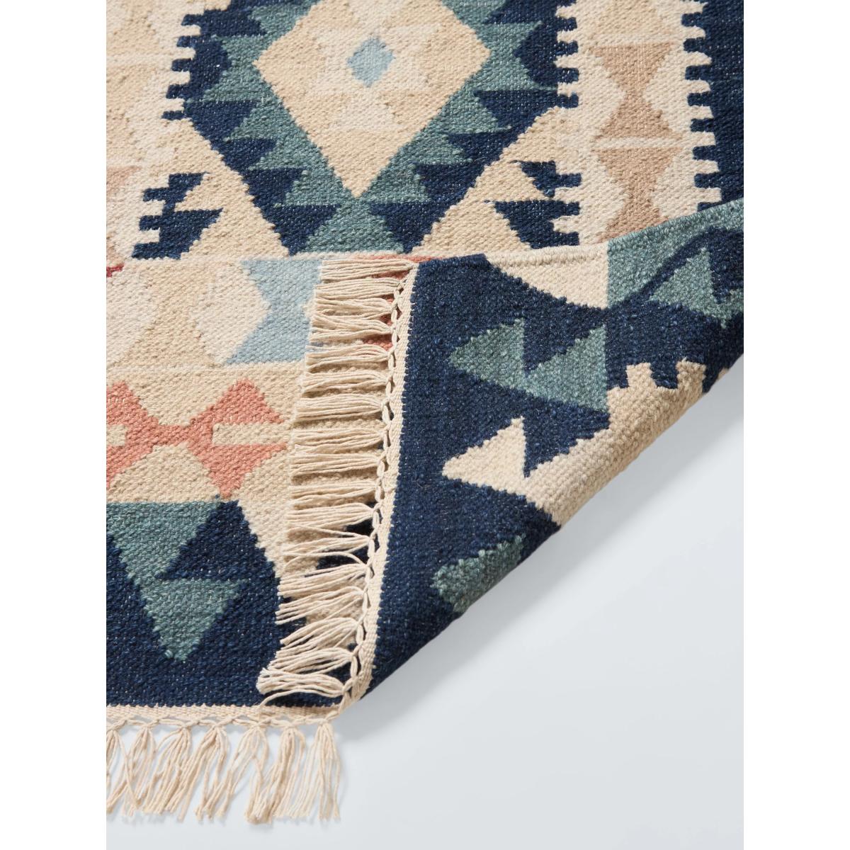 With a beautifully intricate pattern throughout, inspired by centuries of traditional design, this rug is indulgently hand woven from a wool rich pile. With a flat finish making this rug ideal for busy, high-traffic rooms, the materials in this rug have been woven together by hand to create a strong construction. The benefits of a wool rug Warm and durable, wool feels beautifully soft underfoot and is long-lasting Naturally flame-retardant and odour resistant Water repellent so easier to clean Naturally biodegradable, wool is part of the circular economy and contains no micro plastics About your new rug We recommend John Lewis & Partners Rug Hold Underlay. It prevents your rug from moving underfoot and protects against colour transfer to the floor As this rug is made using natural fibres, shedding is to be expected. This will reduce over time, and should not have an impact on the lifespan or performance of your rug. When you first get your rug, please use the brush attachment on your vacuum cleaner whilst the shedding dies down. After that, when vacuuming your rug, use suction only. Rotating brushes may damage the fibres. When vacuuming your rug, use suction only. Rotating brushes may damage the fibres Blot any spills with a clean, dry cloth. Do not rub or use harsh detergents. Attend to spillages immediately and blot with a clean, dry cloth to prevent staining. Dilute a small amount of appropriate carpet shampoo in water. Dampen a colourfast cloth in the diluted shampoo solution and dab the rug, lightly agitating, moving in the direction of the pile. Treat the whole rug and not just the affected area. To restore the appearance of the affected area, use a soft bristled brush to gently comb in the direction of the pile. Allow the rug to thoroughly dry.