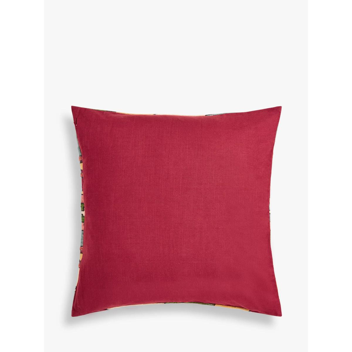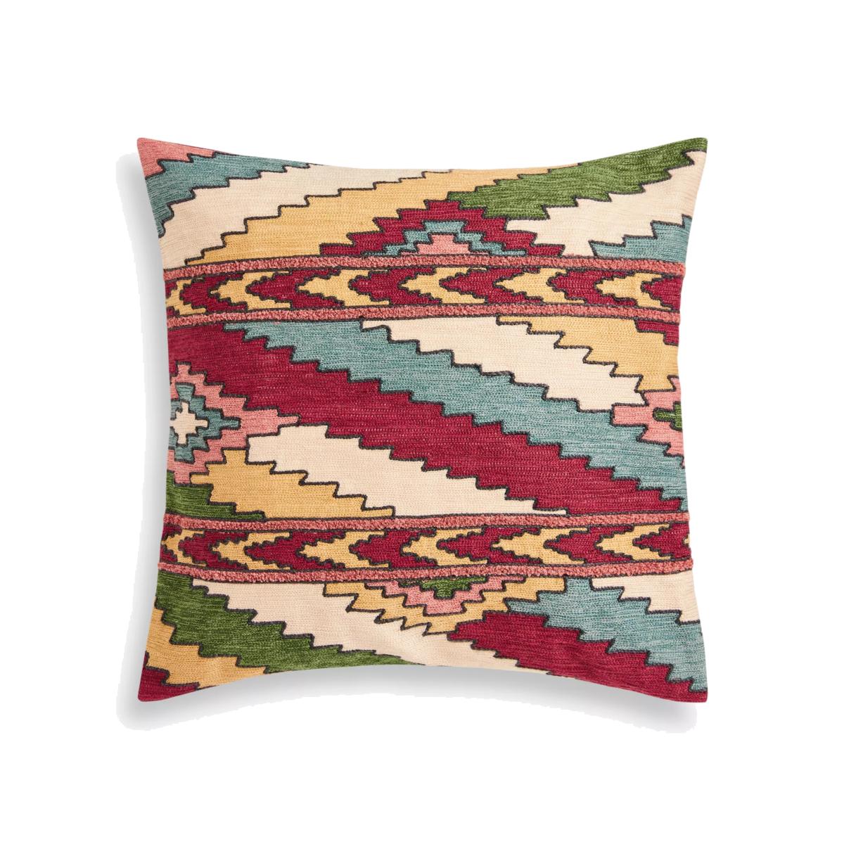 I love this cushion for its vibrant, geometric design, which adds a lively touch to both modern and eclectic interiors. It works particularly well in spaces that feature neutral or minimal colour palettes, providing a splash of colour and visual interest. To style it effectively, try pairing it with textured throws or other cushions in solid colours to let the patterns stand out. Practical tip: this cushion is great for sofas, armchairs, or even beds, making it a versatile addition that can refresh a room without much effort. Its bold design helps create focal points and can easily be integrated into schemes that embrace colour and pattern play.