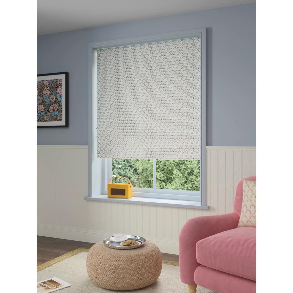 This easy to style blind is both blackout and moisture-resistant so it eliminates light, gives complete privacy and it's also suitable for bathrooms. Key features: Can be installed either inside or outside the window recess, to the wall or ceiling Can be standard or reverse rolled. Standard gives a close fit to the window, helping eliminate light. Reverse brings the material forward over the roll which conceals it and creates space between the blind and window Chain mechanism can be attached on the left or right-hand side, without affecting the way the blind is rolled Width can be cut to size Supplied with easy fit universal brackets Includes safety devices to keep children safe Warm in winter, cool in summer As the blackout lining on this blind blocks out sunlight it helps keep your room cool as well as dark. This 3 layer blackout coating also adds an extra layer of insulation, giving the blind thermal properties which aren’t found on non-blackout blinds. It protects against both heat loss and heat gain, regulating the temperature of your room so you’re kept warm in winter and cool in summer. Worth knowing... The width stated in our product specifications is the total width of the blind including mechanisms and brackets. The width of the fabric alone will be a few centimetres less than this. Safety warning Young children can be strangled by loops in pull cords, chains, tapes and inner cords that operate the product. To avoid strangulation and entanglement, keep cords out of the reach of young children - cords may become wrapped around a child's neck Move beds, cots and furniture away from window covering cords Do not tie cords together. Make sure cords do not twist and create a loop More information on child safety can be found on our Child Safety Hub