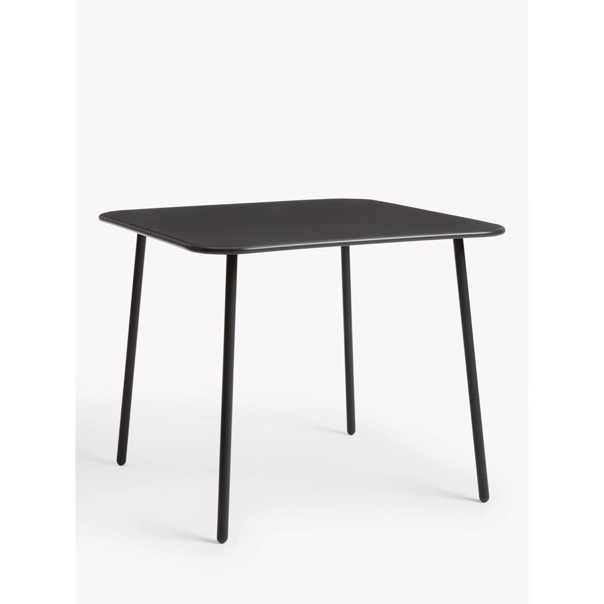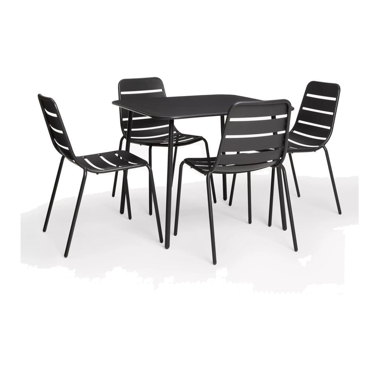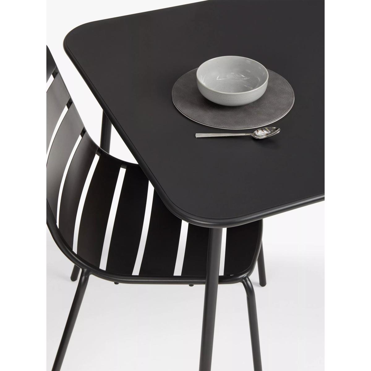 Contemporary four-seater dining set made of sturdy steel with a durable and weather-resistant powder-coated finish. Each chair arrives fully assembled, ready for immediate use and is able to withstand a weight of up to 25 stone (160kg) per chair, exceeding the industry standard. Easy to maintain, all this set needs is a quick wipe down with warm soapy water to keep it clean. Team it with other metal garden furniture in this range. Key features: Four garden dining chairs Square garden dining table Weather-resistant powder-coated steel Robust design withstands up to 25 stone (160kg) per chair Chairs are fully assembled, table is easy to assemble Easy to clean and maintain Garden furniture care: To keep your outdoor furniture in the best condition, store it in a cool, dry, well-ventilated spot indoors over the winter. If it's staying outside, use an outdoor furniture cover whenever the weather is wet or unseasonal. Make sure furniture is clean and dry before storing it away.