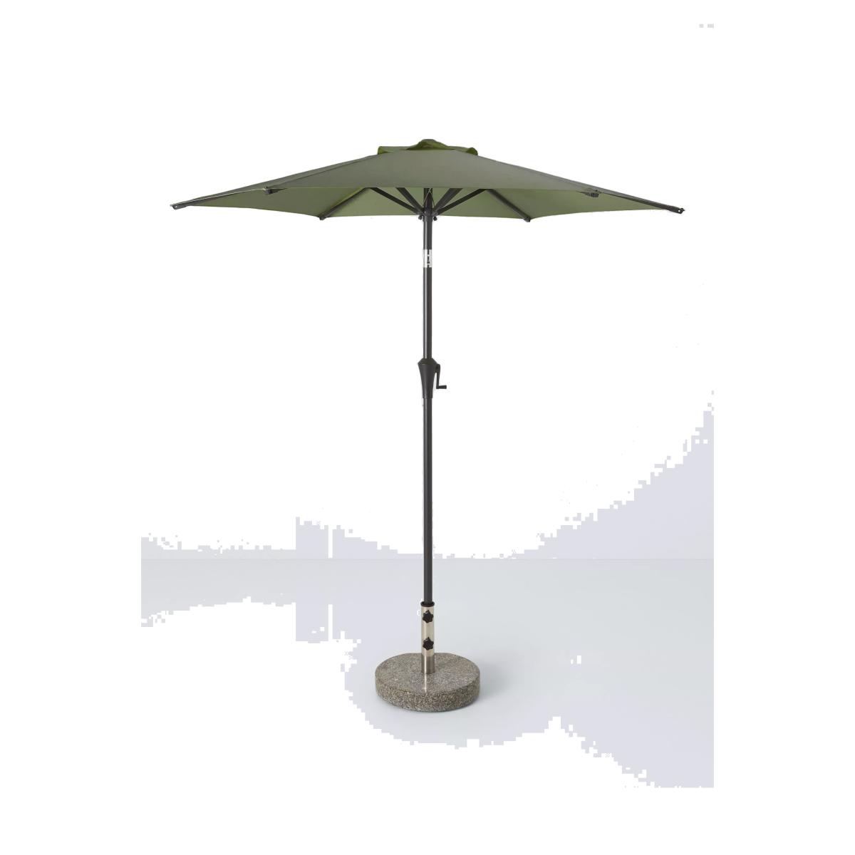 Operated by an easy wind-up mechanism, this garden parasol gives you protection from the sun. It's made with a shower-resistant canopy offering UV50+ sun protection and a lightweight, corrosion-resistant aluminium pole. Key features: Wind-up mechanism UV50+ sun protection and shower-resistant removable canopy Durable ribs Sturdy, corrosion-resistant aluminium pole Base not included. Requires a 15kg base, even when closed. Choose a suitable parasol base weight. Parasol care information When not in use or in windy weather, we recommend you close the parasol down and add a parasol cover Never drag a parasol when moving it, always lift it Periodically check all fixings to ensure none have come loose and re-tighten where necessary Do not excessively tilt or sway the canopy. Do not hang items from or swing from the canopy as this will cause tipping