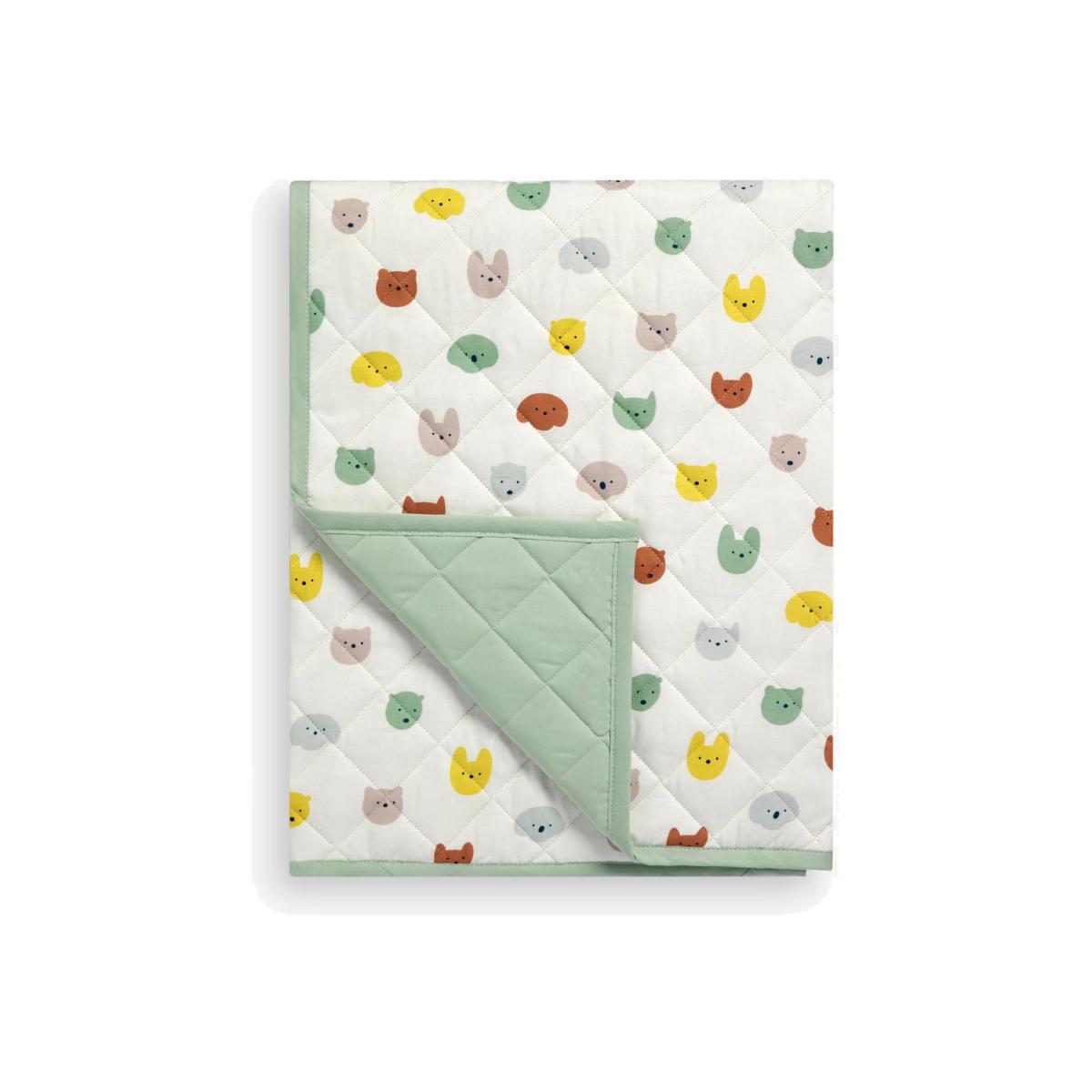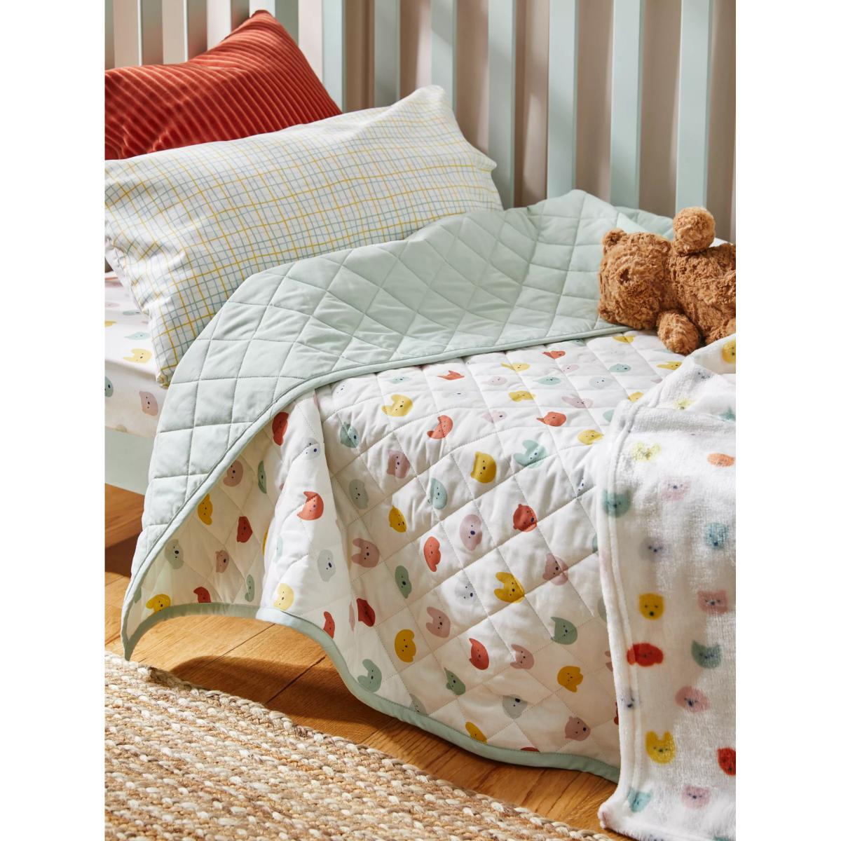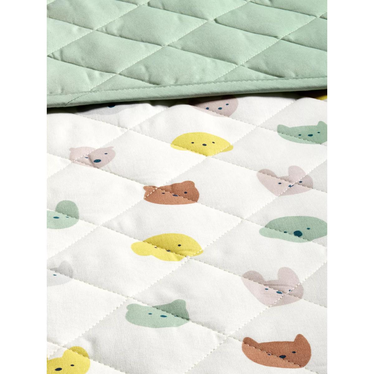 John Lewis ANYDAY Animal Faces Reversible Quilted Bedspread, Green/Multi
