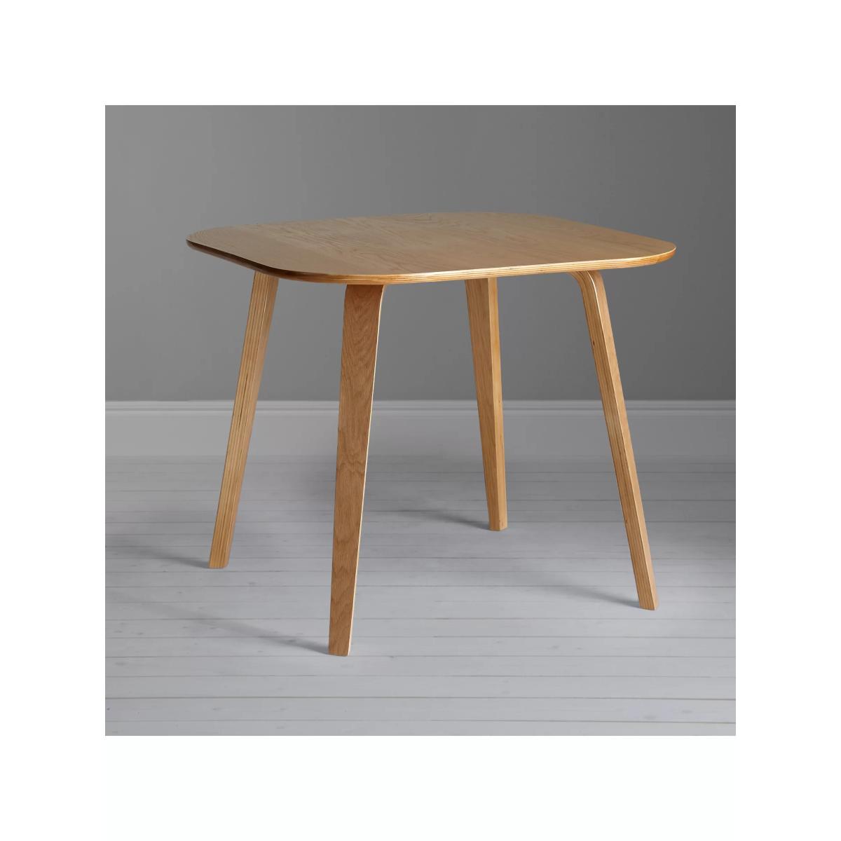 There's space for four at this dining table, so you don't have to compromise on style even if space is limited. We've made it from high-quality oak veneer and plywood and also added a lacquered coating for extra durability. Rounded edges give it a softer, more subtle profile, while splayed legs play on Scandi-inspired design. We like how it showcases warm, natural wood grains throughout. Also available in black. Want to see it first? You may want to see and get a feel for the furniture in one of our shops before ordering. We'll be able to tell you where the range you'd like to view is on display. With great prices and great design, our new brand offers style and quality for modern living today. Whatever you need, there’s joy to be found in ANYDAY.