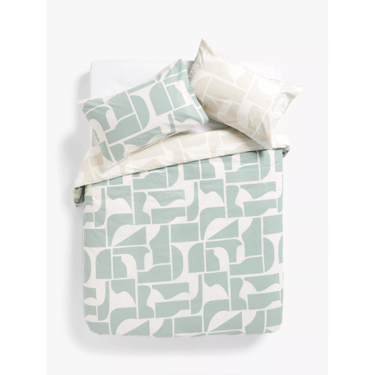 Resembling puzzle pieces, this simple and modern design gives you a choice of natural or duck egg blue colourways. The single set comes with one standard pillowcase, while the double, king and super king sets come with two standard pillowcases. With great prices and great design, our new brand offers style and quality for modern living today. Whatever you need, there's joy to be found in ANYDAY. Bedding sizes To fit duvet/pillow size (cm) Standard pillowcase, L75 x W50cm Single duvet cover, L200 x W135cm Double duvet cover, L200 x W200cm King duvet cover, L220 x W225cm Super king duvet cover, L220 x W260cm Better Cotton By choosing our cotton products, you’re supporting our investment in Better Cotton’s mission to help cotton communities survive and thrive while protecting and restoring the environment. Better Cotton Farmers are farmers who care for the environment and respect workers’ rights and wellbeing. This product is sourced via a system of mass balance and therefore may not contain Better Cotton. bettercotton.org/massbalance