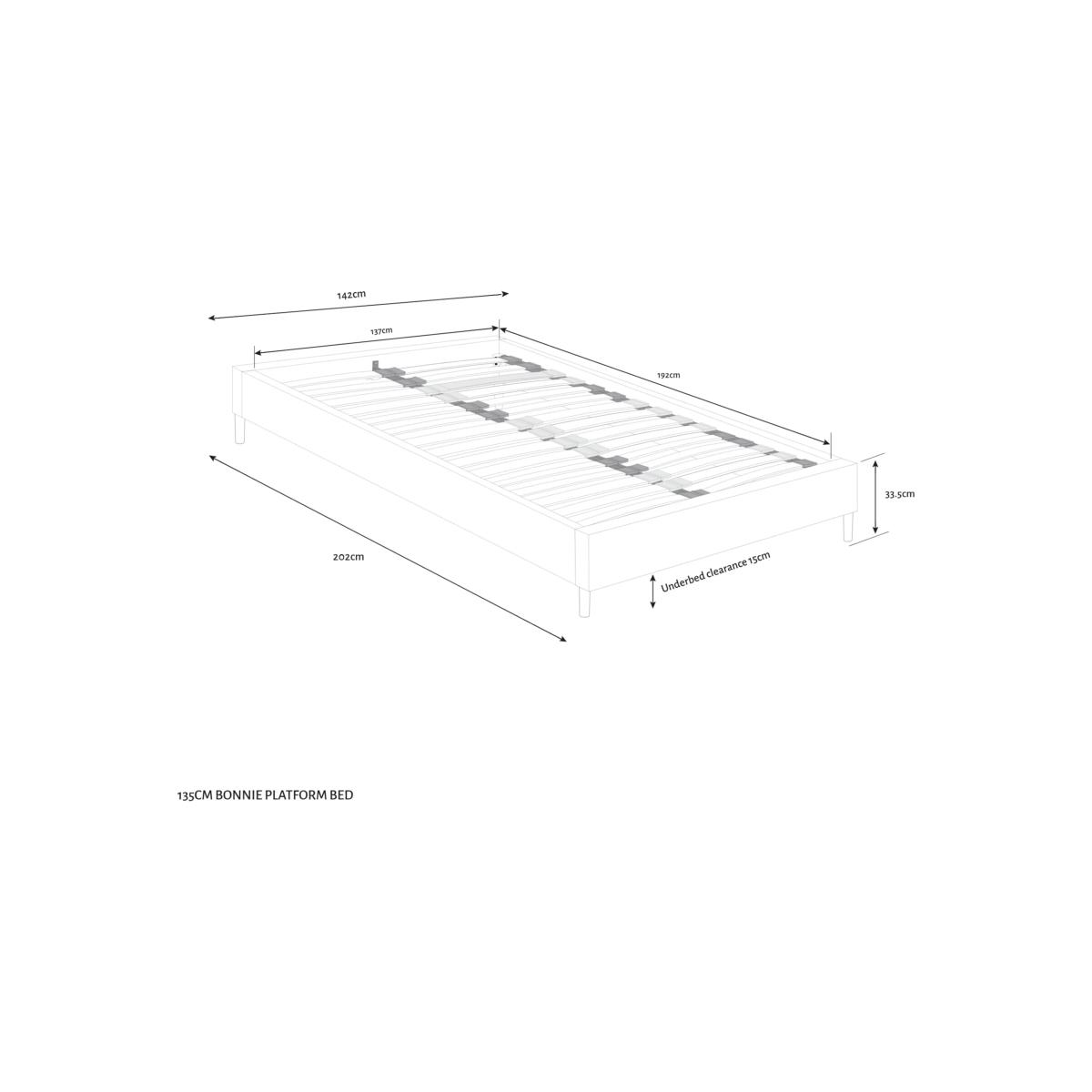 Beautifully simple, impressively sturdy and available at a price you'll love. Our sleek Bonnie platform bed frame has soft edges and modern, minimalist wooden legs. We've also added sprung Smart Slats to the base which are wider at the shoulders, lumbar and feet for enhanced support where you need it most. Want to see it first? You may want to see and get a feel for the furniture in one of our shops before ordering. We'll be able to tell you where the range you'd like to view is on display.