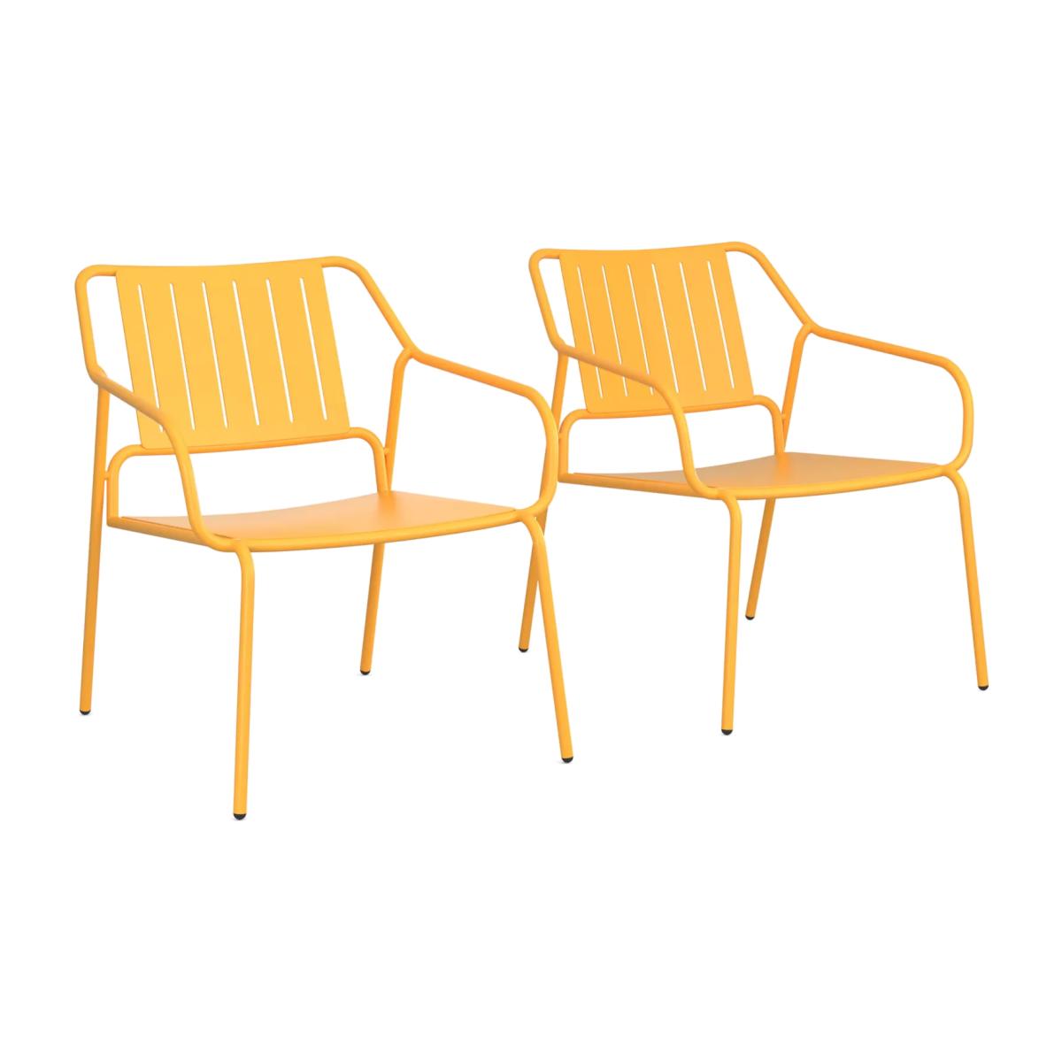 Bright and modern, this pair of lounge chairs are a durable and weather-resistant design, made of powder-coated steel, for use in a conservatory or outdoors in the garden or on the patio. The chairs arrive fully assembled ready for immediate use. Easy to maintain, all they need is a quick wipe down with warm soapy water to keep them clean. Team them with other metal garden furniture in this range in a matching or contrasting on-trend colour. Key features: Pair of garden lounge chairs Weather-resistant powder-coated steel Robust design withstands up to 17 stone (110kg) each Fully assembled Stackable for easy storage Easy to clean and maintain With great prices and great design, our new brand offers style and quality for modern living today. Whatever you need, there's joy to be found in ANYDAY. Want to see it first? You may want to see and get a feel for the product in one of our shops before ordering. We'll be able to tell you where the range you'd like to view is on display.