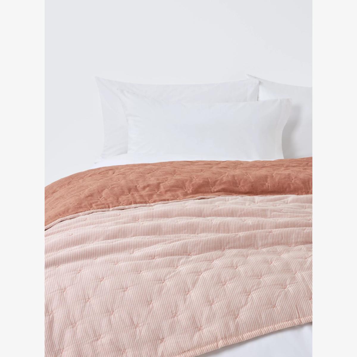 John Lewis ANYDAY Chambray Stripe Reversible Quilted Bedspread