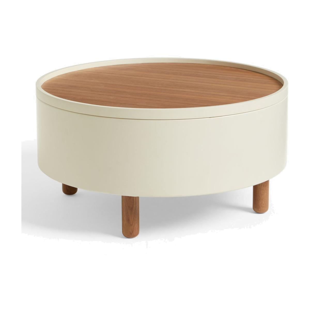 On-trend design and storage in one. This compact round coffee table has a walnut-stained top that removes to reveal plenty of space for storage underneath. Want to see it first? You may want to see and get a feel for the furniture in one of our shops before ordering. We'll be able to tell you where the range you'd like to view is on display. With great prices and great design, our new brand offers style and quality for modern living today. Whatever you need, there's joy to be found in ANYDAY.