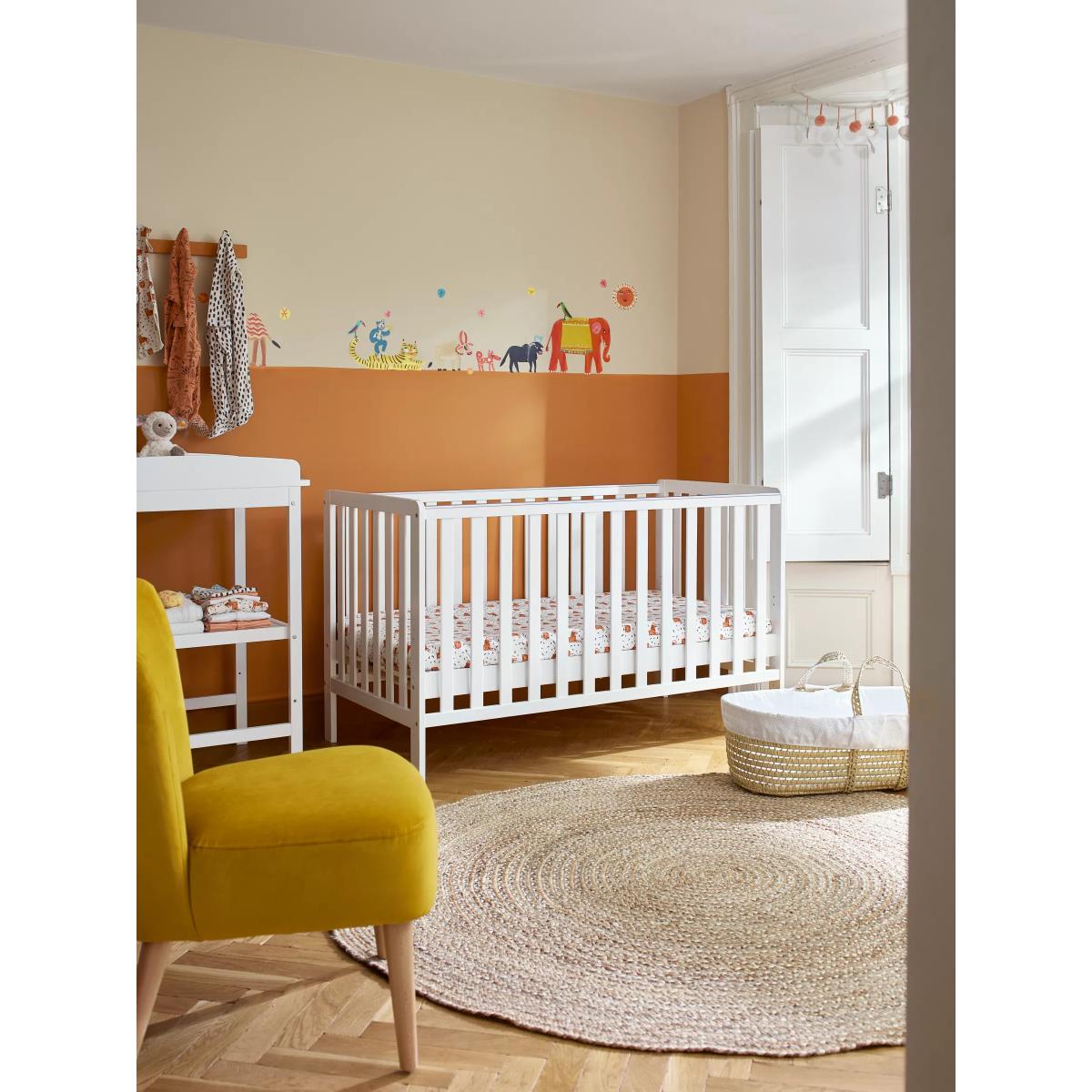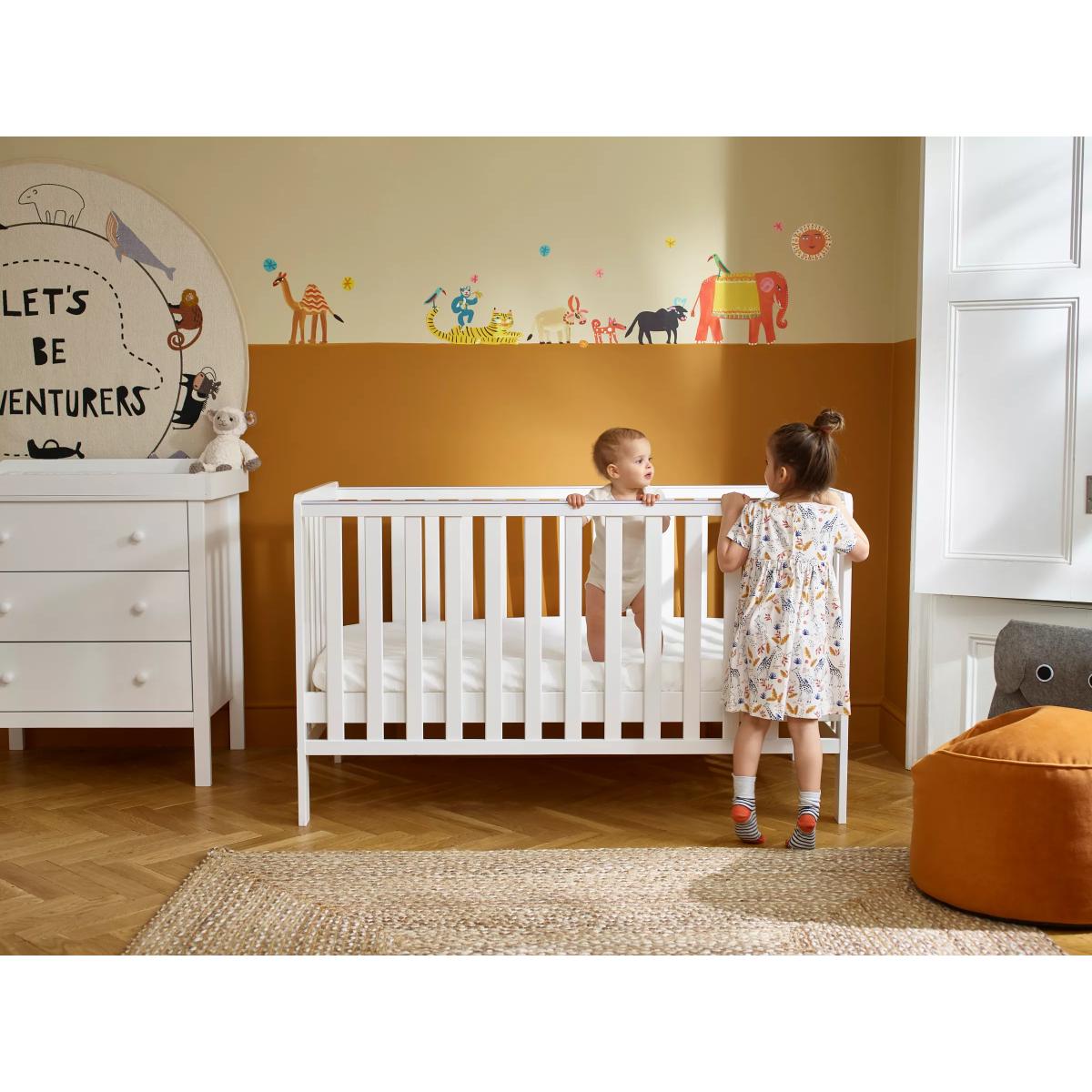 Part of our Elementary range, this solid pine cotbed is a straightforward design that's easy to assemble. The bed has three adjustable base positions. You can use the space under the bed for storage to keep your child's favourite toys handy. This cotbed also offers the great value-added feature of having teething rails. These are there so that they can protect your baby from any harm as they go through the natural process of teething. If you do not wish to have these on the cotbed, please remove them before assembly. Suitable from birth, this cotbed requires a standard 140 x 70cm mattress with a maximum thickness of 12cm (sold separately). The cotbed complies with safety standards EEN 716-1:2017+AC:2019 & EN 8509:2008+A1:2011. Good to know: Lowest position: from top of the base 22.9cm, from bottom of the base 14.9cm Middle position: from top of the base 37.4cm, from bottom of the base 29.4cm Highest position: from top of the base 51.9cm, from bottom of the base 43.9cm With great prices and great design, our new brand offers style and quality for modern living today. Whatever you need, there’s joy to be found in ANYDAY.