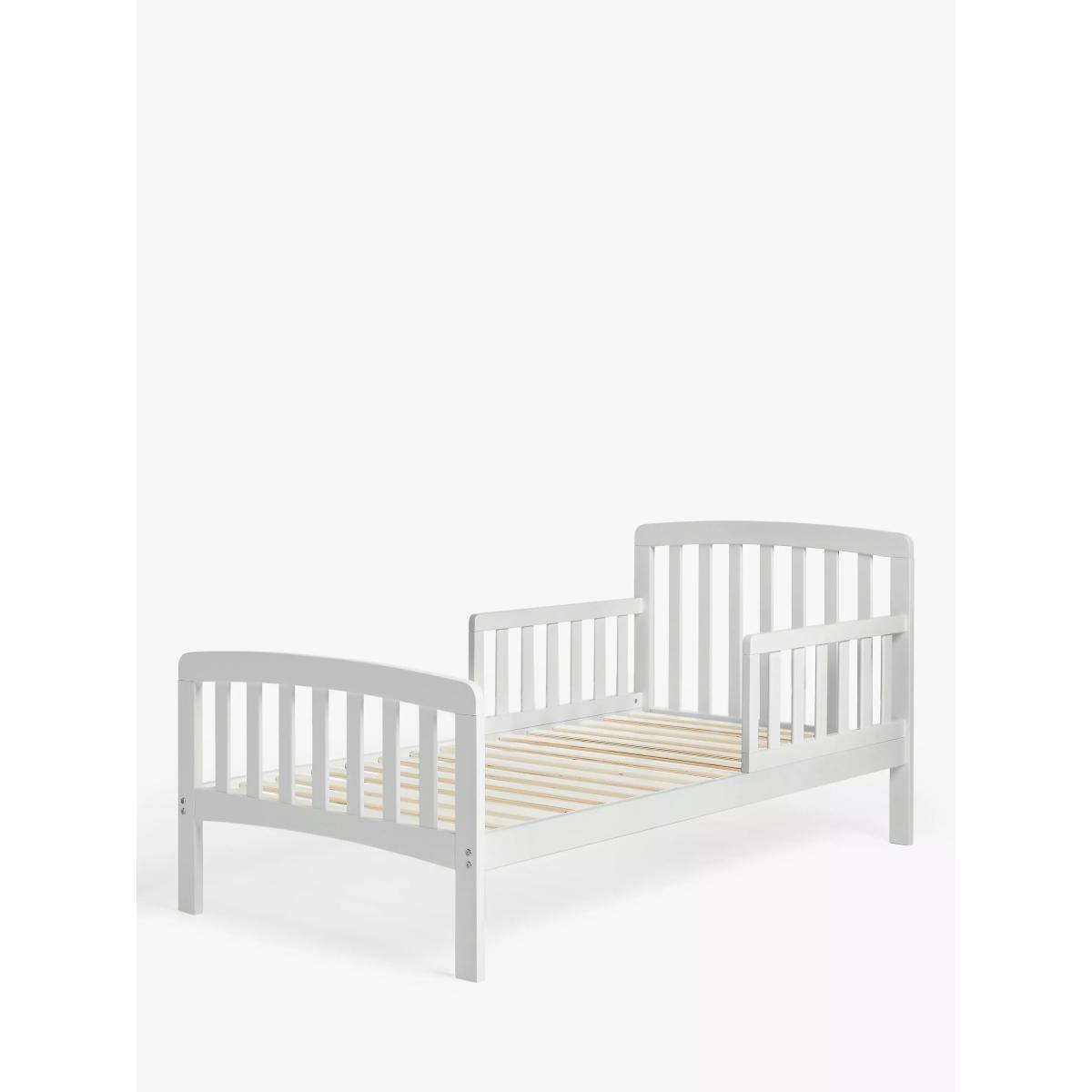 Our toddler bed will help your child move to their next stage of childhood. The bed is made from painted pine wood and has side frame protection boards to give you and your child a peace of mind. The space under the bed offers the possibility to keep their favourite toys and slippers handy. Suitable from 18 months, this toddler bed requires a standard 140 x 70cm mattress (sold separately). The bed complies with safety standards EN 8509:2008+A1:2011. With great prices and great design, our new brand offers style and quality for modern living today. Whatever you need, there’s joy to be found in ANYDAY.