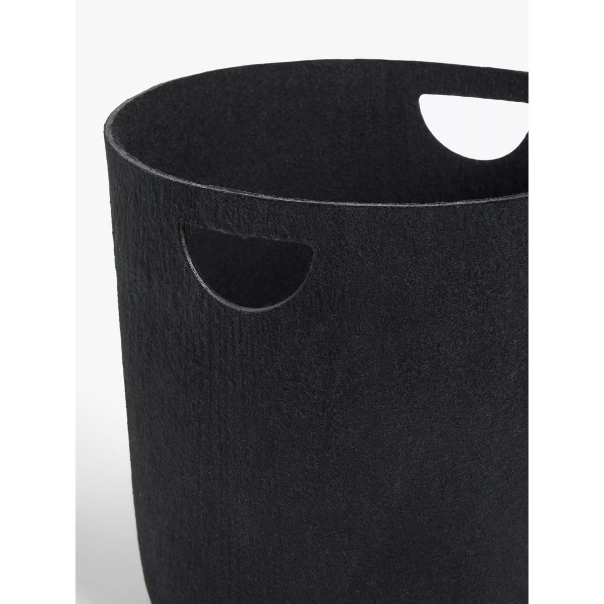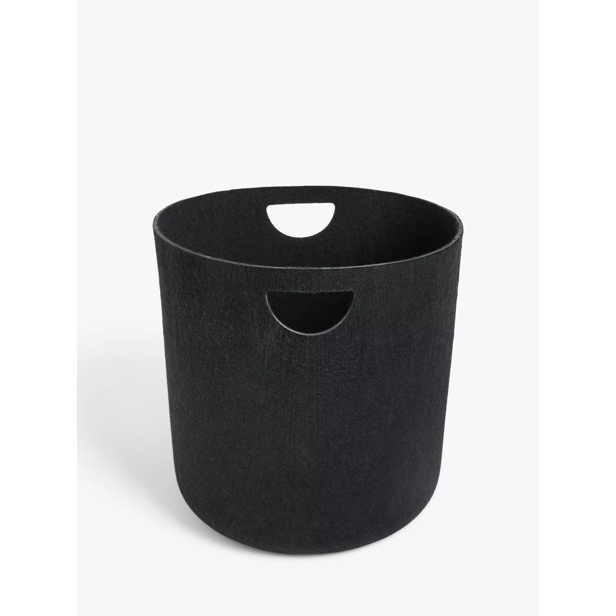 I really like this round felt basket for its versatility and understated style. Its neutral black shade makes it easy to incorporate into a variety of interiors, from minimalist and contemporary spaces to cosy, eclectic rooms. I recommend using it to keep clutter out of sight in living areas, bedrooms, or bathroom spaces, thanks to its practical size and soft feel. To style it effectively, consider grouping with other storage baskets of different sizes or textures for added visual interest, or using it as a standalone feature in a corner. Its simple design allows it to blend effortlessly into both functional and decorative arrangements, making it a smart choice for anyone looking for tidy storage that doesn't compromise on aesthetic.