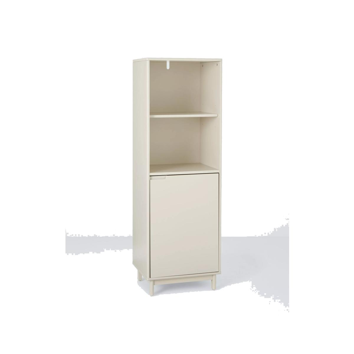 I’m a big fan of this narrow greige bookcase for its clean lines and adaptable colour - it slips effortlessly into Scandi-inspired, contemporary or even more traditional schemes without overwhelming a small room. The slim frame makes it ideal for hallways or home offices where floor space is tight. Styling-wise, mix upright books with a few horizontal stacks to give the shelves rhythm, then break up the linear look with a small plant or ceramic vase. The lower cupboard is perfect for hiding office clutter or stashing toys, while woven baskets on the shelves introduce texture and help keep things tidy.