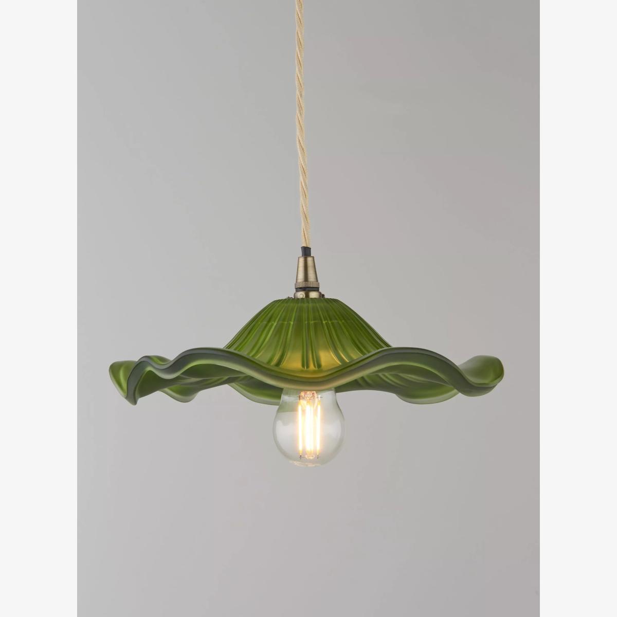 Attach this shade to your existing ceiling light for a vintage-style look. Made from glass with ribbed detailing and an elegant ruffle on the edge. This Easyfit shade is suitable for B22 or E14 pendants fittings only.