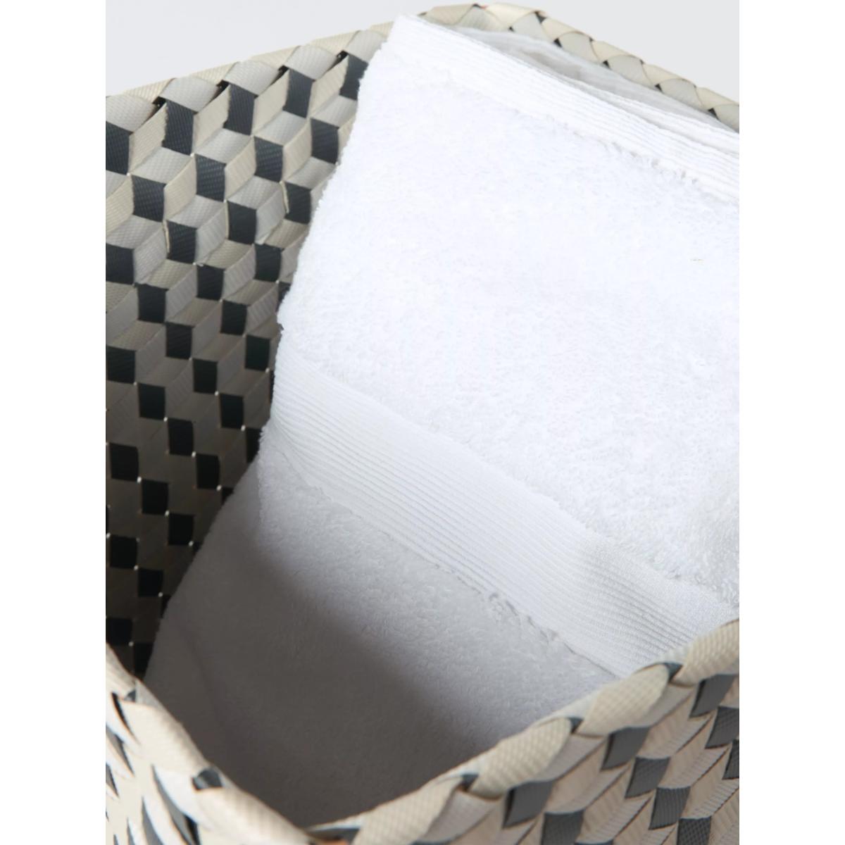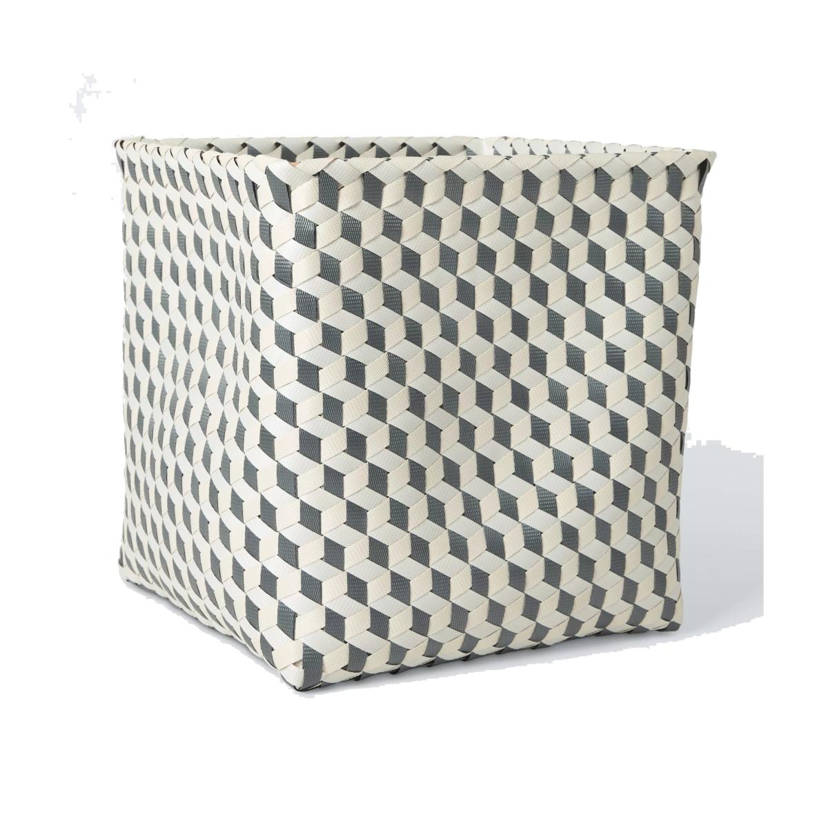 This woven webbing basket creates a 3D block effect with its duo tones. Lightweight, yet sturdy it's handy for storage anywhere around the home.