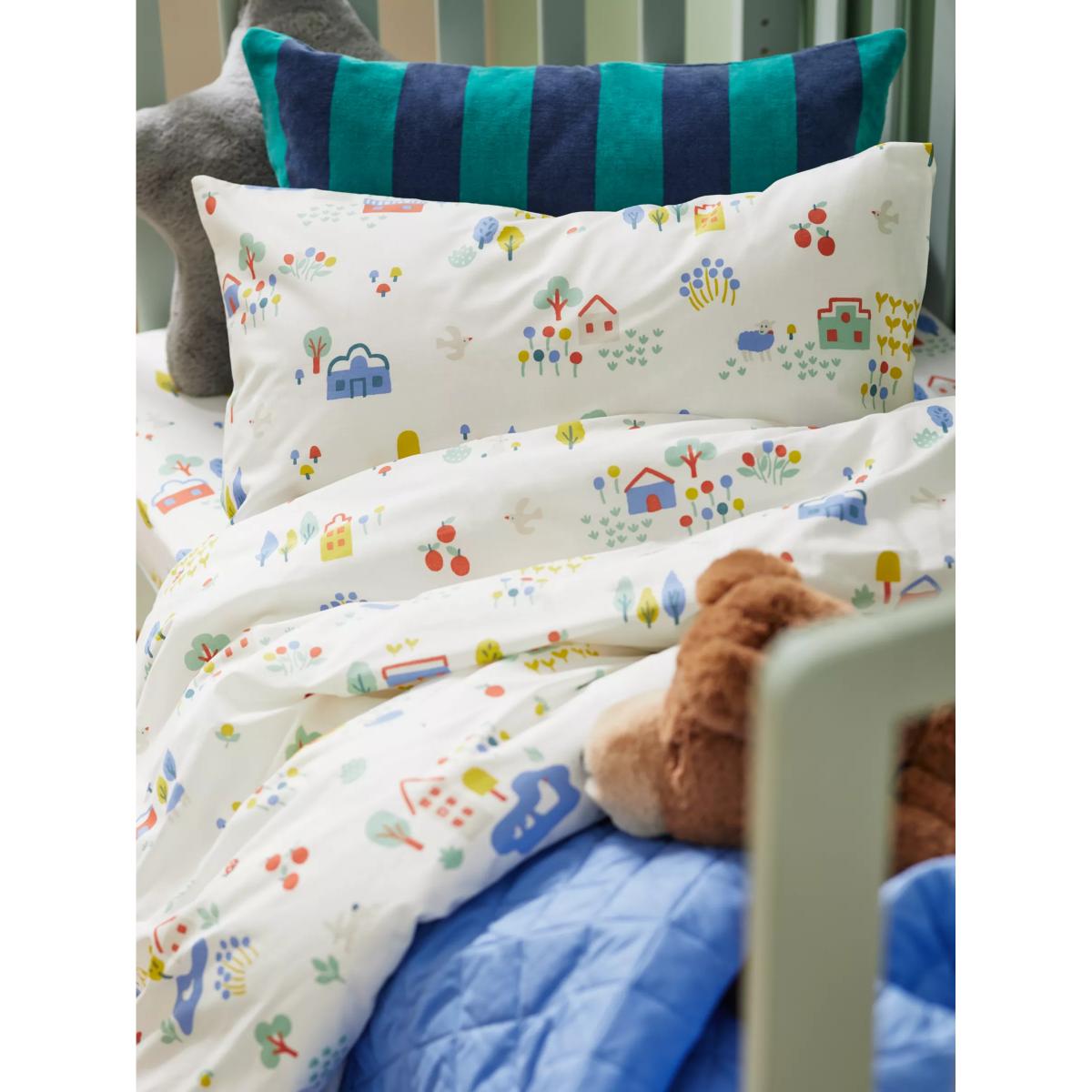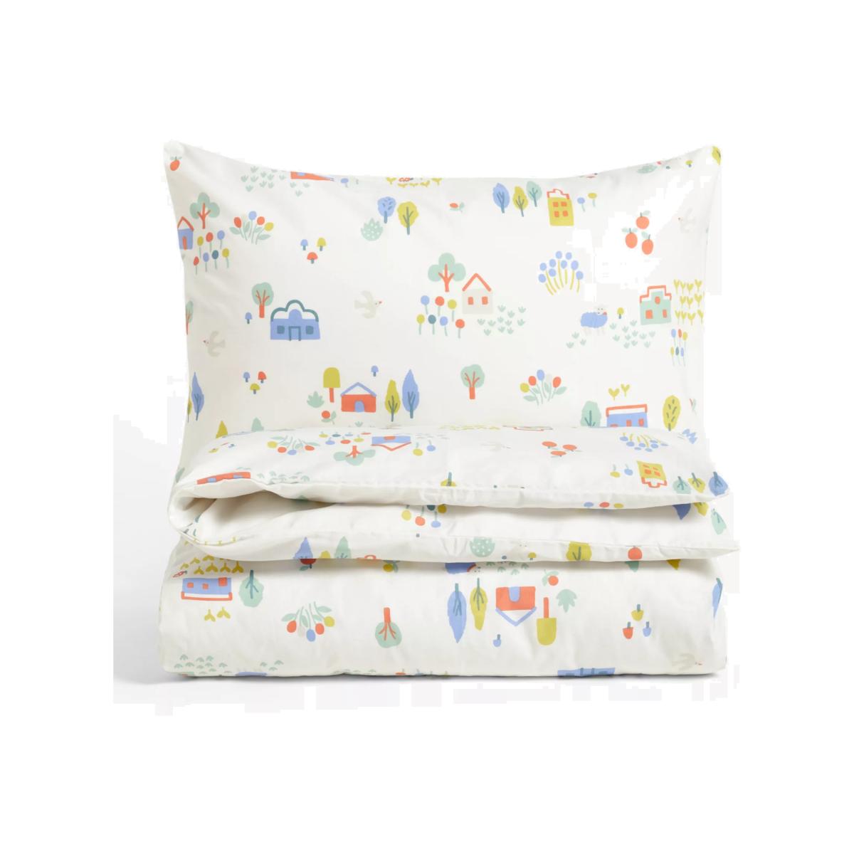 With a light and playful print, this toddler bedding set makes a great addition to any nursery. With a reversible design, you can choose between happy houses on one side or colourful fauna on the other side. Crafted from pure cotton for a breathable feel that won't irritate their skin, it has a 144 thread count to ensure the little one stays comfortable at all times. This set includes one duvet cover and one junior pillowcase measuring W40 x D60cm. It's part of our coordinated range for your baby's nursery so you can get all the matching items. Please remember: Quilts, duvets and pillows are not suitable for children under 12 months due to the risk of overheating. With great prices and great design, our new brand offers style and quality for modern living today. Whatever you need, there’s joy to be found in ANYDAY.