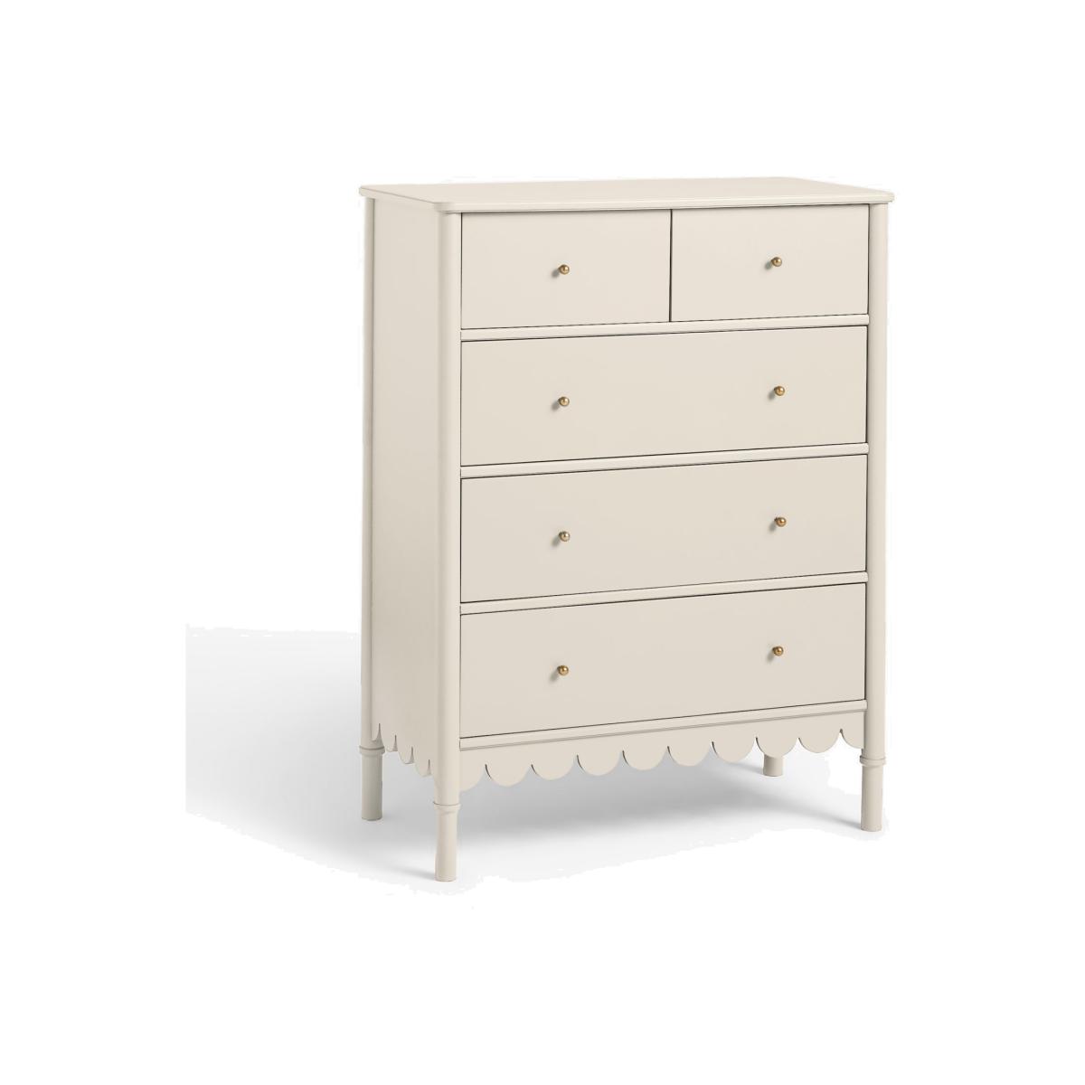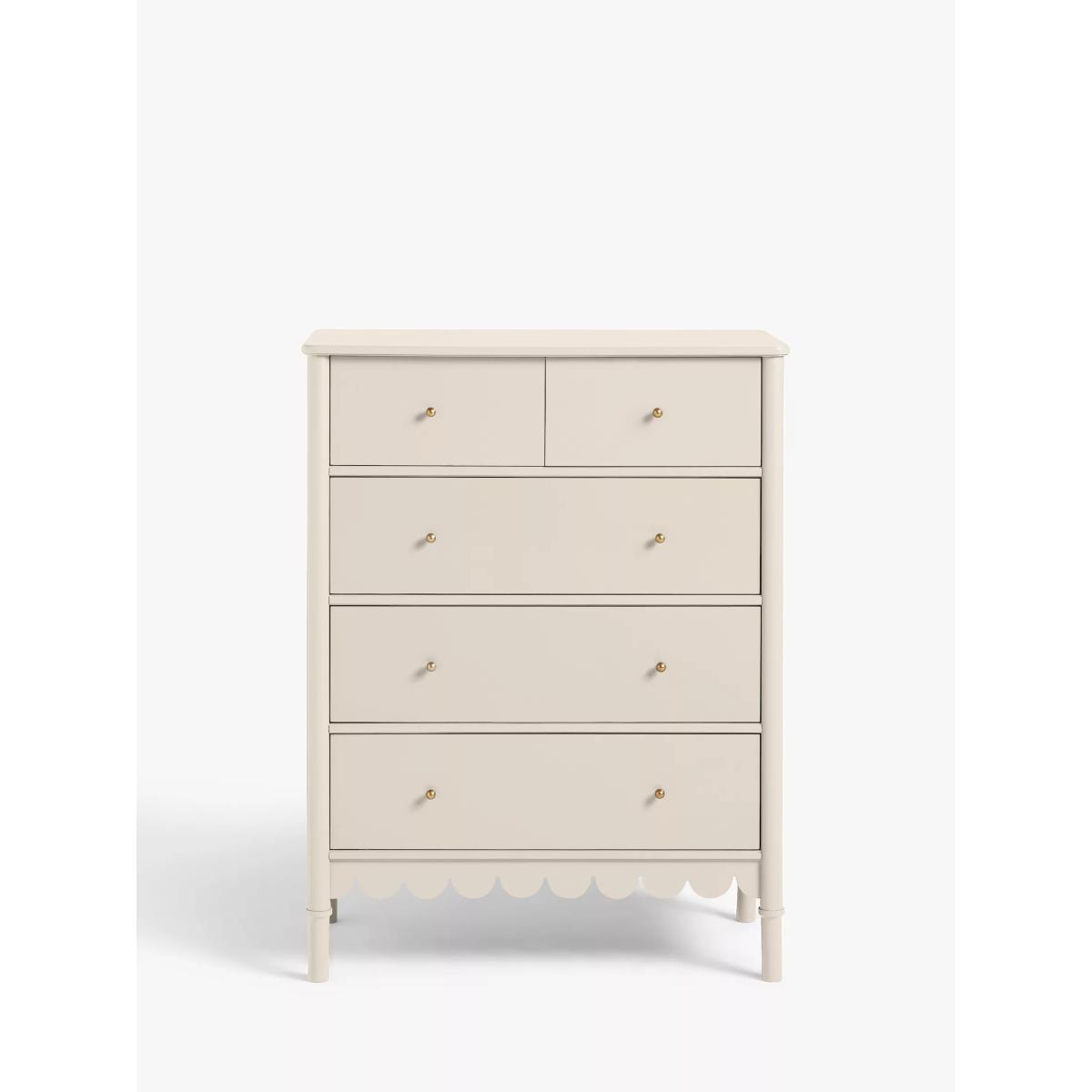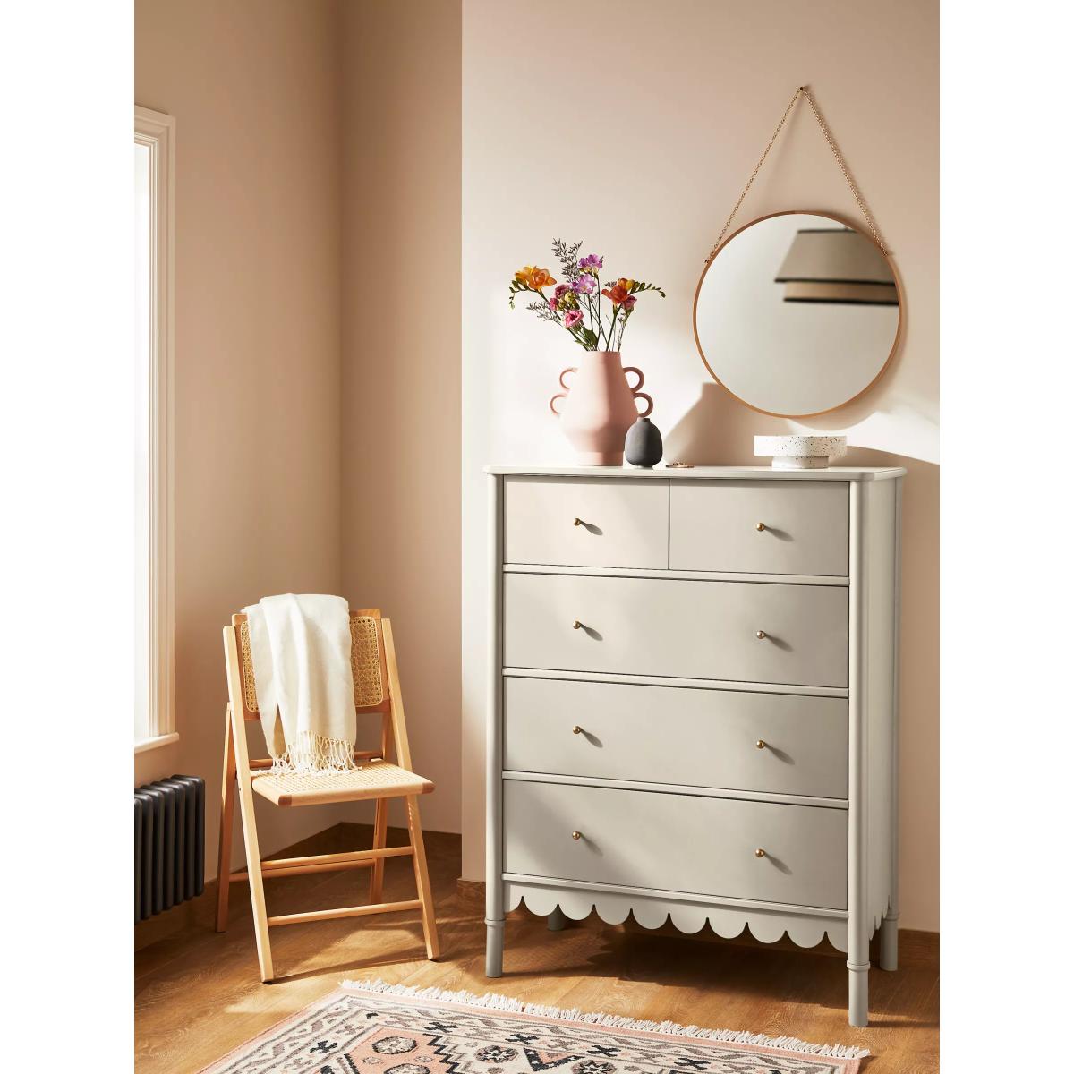 An injection of decorative design and a splash of colour are two ways to transform your bedroom. This chest of drawers combines both, with its sweet, scalloped edge design detail and bold painted finish. Compact, playful and of course practical, its five drawers provide plenty of storage space. Want to see it first? You may want to see and get a feel for the furniture in one of our shops before ordering. We'll be able to tell you where the range you'd like to view is on display. With great prices and great design, our new brand offers style and quality for modern living today. Whatever you need, there’s joy to be found in ANYDAY.