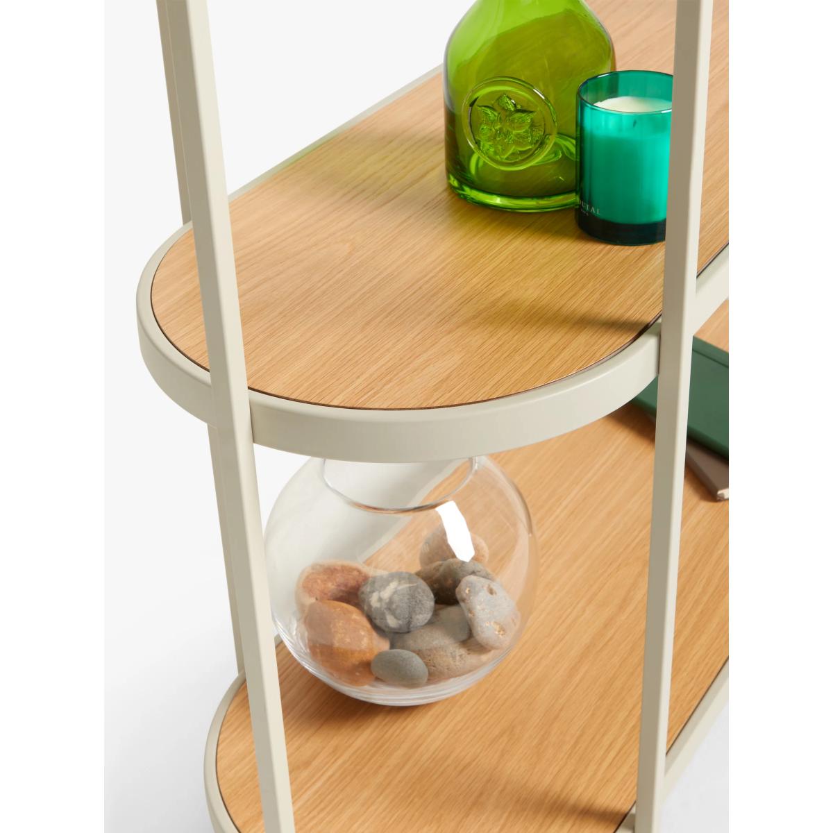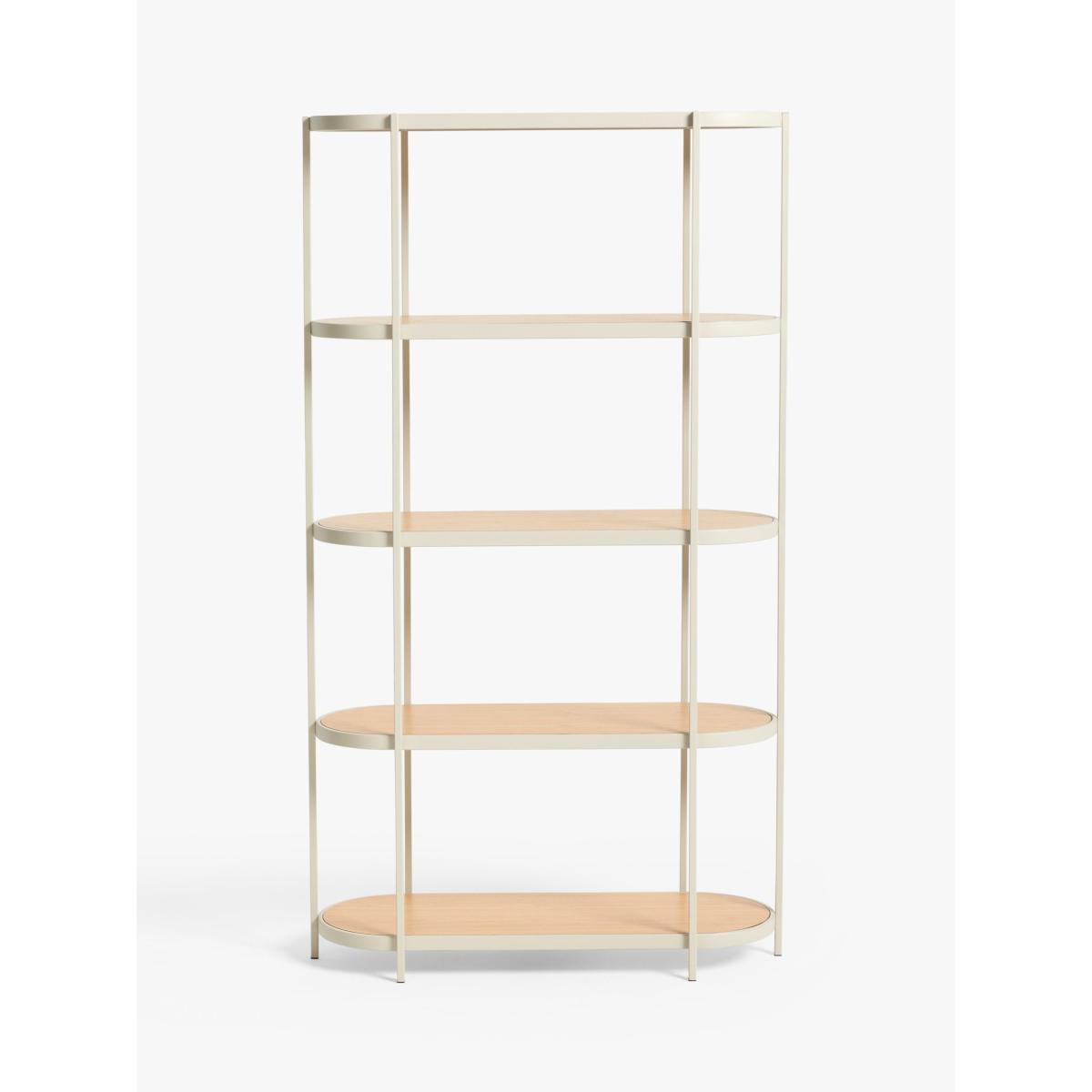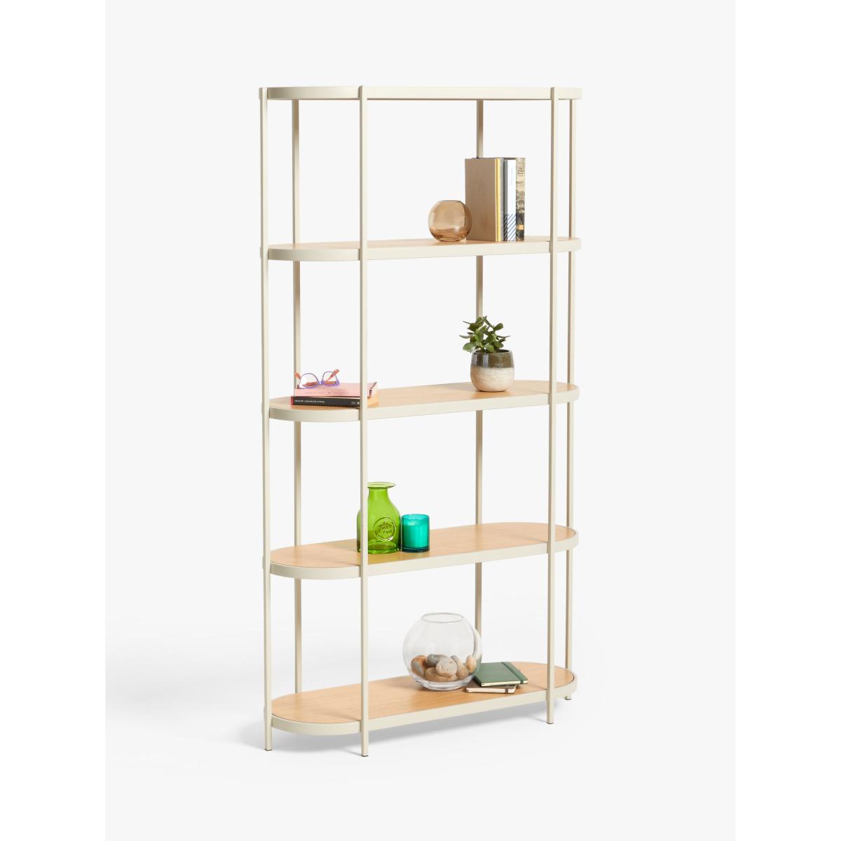 The first thing you notice about this shelving unit is its shape. Note its cool, capsule profile, softly rounded unlike most other shelving units. We've designed it this way so that it creates a softer styling accent in your space and it won't be too imposing when it's styled up with your books and ornaments, maybe even a houseplant or two. The five shelves are made from oak and MDF and the frame from sturdy steel. And assembly is straightforward, too. Want to see it first? You may want to see and get a feel for the furniture in one of our shops before ordering. We'll be able to tell you where the range you'd like to view is on display. With great prices and great design, our new brand offers style and quality for modern living today. Whatever you need, there's joy to be found in ANYDAY.