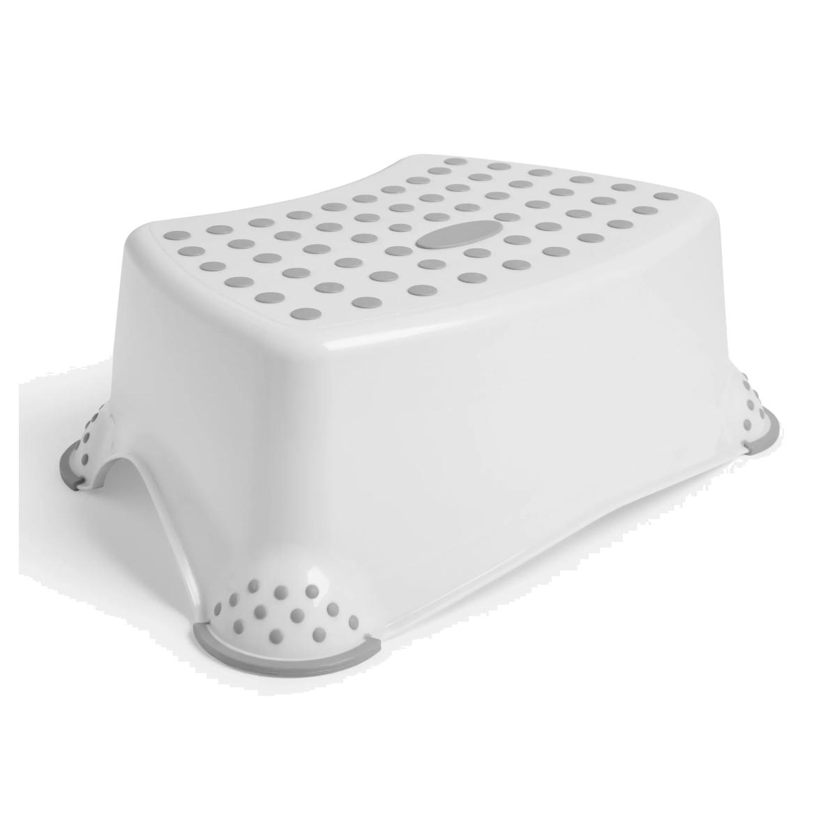 Single step stool for children aged approximately 3 to approximately 14 years, for safe climbing and sitting. Ideal for reaching the sink or toilet. Child-safe with no tipping or slipping thanks to its non-slip system with rubberised feet and rubber nubs on the surface for stable and secure standing. Easy to carry thanks to its low weight, it has a load capacity up to a maximum of 80kg. Made of high-quality, sturdy plastic free from BPA and plasticisers and with no release of harmful substances.