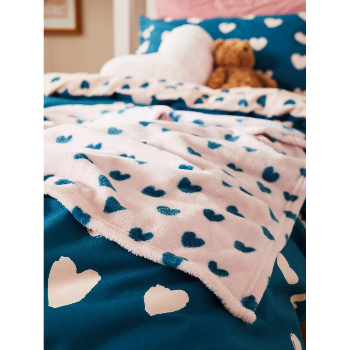 John Lewis ANYDAY Love Hearts Fleece Blanket, 120 x 120cm