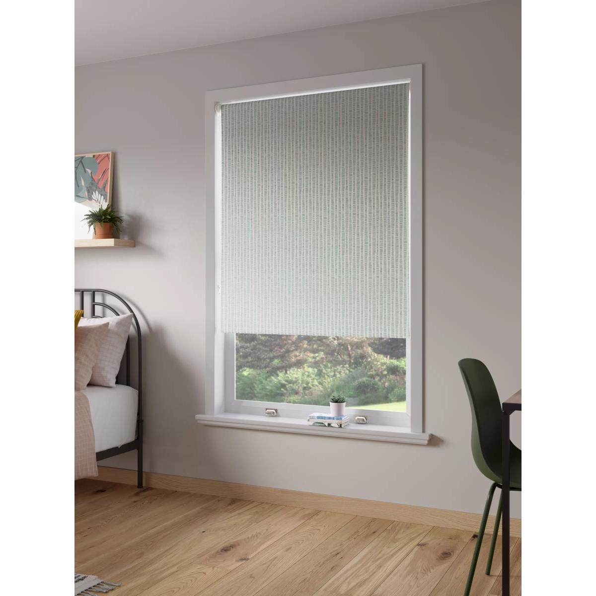 Bring contemporary style into your home with our ANYDAY Mesa roller blind. The blackout quality eliminates light and gives complete privacy so you can get a sound night’s sleep and not be disturbed by the early rising sun in the summer months. With great prices and great design, our new brand offers style and quality for modern living today. Whatever you need, there's joy to be found in ANYDAY. Key features: Can be installed either inside or outside the window recess, to the wall or ceiling Can be standard or reverse rolled. Standard gives a close fit to the window, helping eliminate light. Reverse brings the material forward over the roll which conceals it and creates space between the blind and window Chain mechanism can be attached on the left or right-hand side, without affecting the way the blind is rolled Width can be cut to size Supplied with easy fit universal brackets Includes safety devices to keep children safe Warm in winter, cool in summer As the blackout lining on this blind blocks out sunlight it helps keep your room cool as well as dark. This 3 layer blackout coating also adds an extra layer of insulation, giving the blind thermal properties which aren’t found on non-blackout blinds. It protects against both heat loss and heat gain, regulating the temperature of your room so you’re kept warm in winter and cool in summer. Worth knowing... The width stated in our product specifications is the total width of the blind including mechanisms and brackets. The width of the fabric alone will be a few centimetres less than this. Safety warning Young children can be strangled by loops in pull cords, chains, tapes and inner cords that operate the product. To avoid strangulation and entanglement, keep cords out of the reach of young children - cords may become wrapped around a child's neck Move beds, cots and furniture away from window covering cords Do not tie cords together. Make sure cords do not twist and create a loop More information on child safety can be found on our Child Safety Hub With great prices and great design, our new brand offers style and quality for modern living today. Whatever you need, there's joy to be found in ANYDAY.
